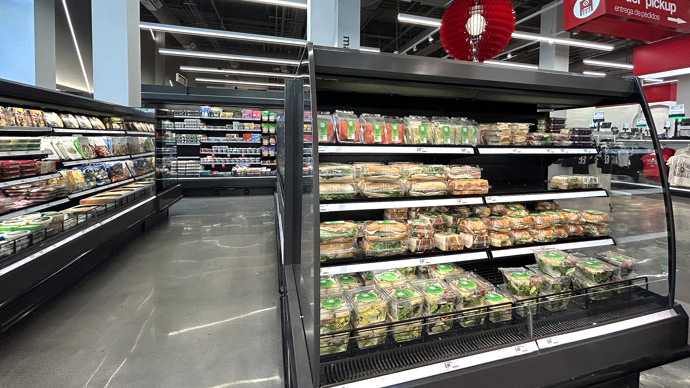 入口にはスターバックスカフェが併設されており、観光の合間に本格的なコーヒーでひと息つけるのも嬉しいポイント。入ってすぐの広いスペースには、お手頃価格のサンドイッチやサラダが並び、ホテルでの食事代を節約したい時にも重宝しそう。さらに奥へ進むと地元プロスポーツチームのTシャツなどを扱うアパレルコーナーも登場します。