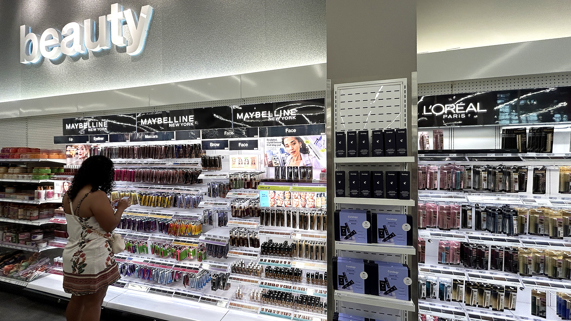 化粧品売り場には、CVS同様プチプラコスメが壁一面に並びます。こちらは鍵付きケースに入っていないので、実際に手に取りながら色味やテクスチャーを確認してじっくり選べますよ。