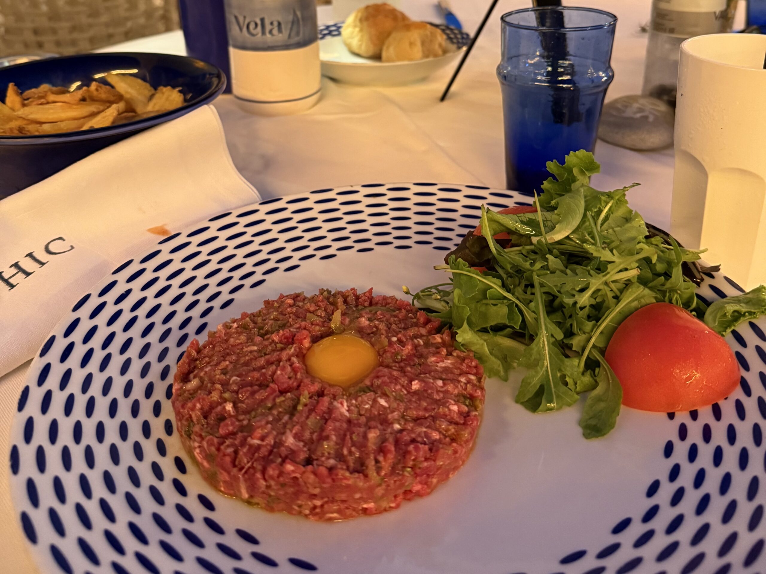 牛肉のタルタル、トリュフピザなどニースへ行ったら食べたい料理がメニューに並びます。