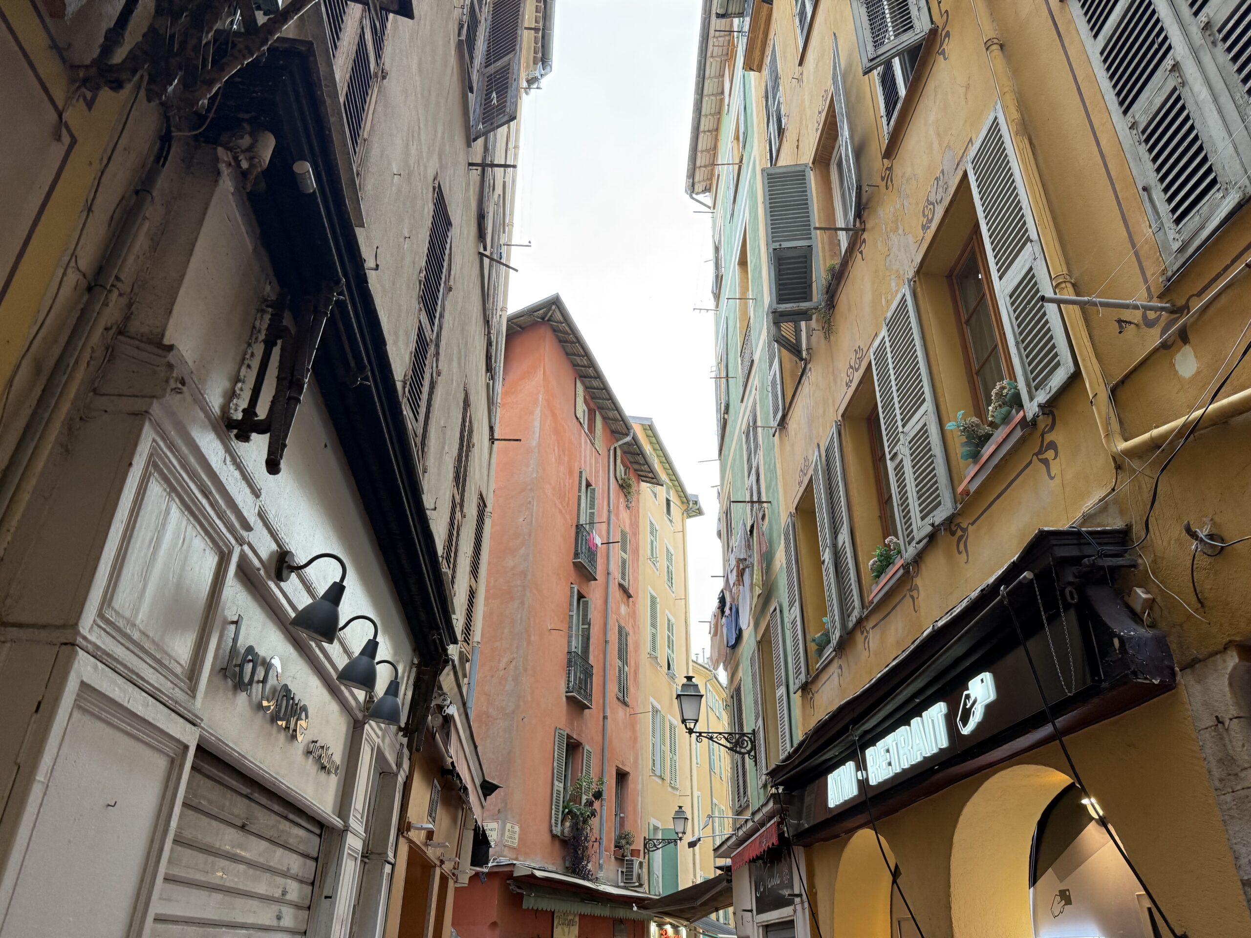 ニースの旧市街は、迷路のような狭い通りがあり、1階にはレストラン、ショップ、アーティストのギャラリーなどが入っています。