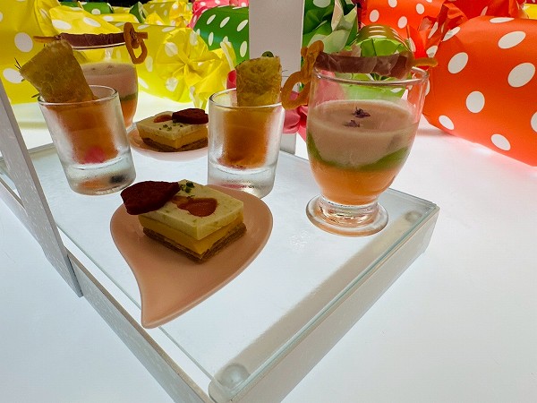 甘いスイーツだけでなく、サーモンのクレープ巻きブーケ仕立て、さつまいもスープ&人参ムース、生ハムグリッシーニ、カボチャとフィッシュテリーヌなど、見た目にも可愛くて満足感のあるセイヴォリーが揃います。