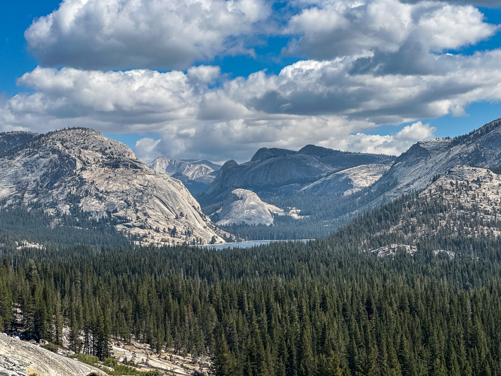 Olmsted Pointを過ぎると、目の前にTenaya Lake(2484m)が見えてきます。
