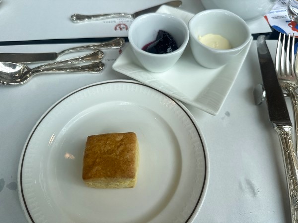 ・スコーン(クロテッドクリーム・ブルーベリージャム付き):外はサクッと、中はしっとり。口の中でほろっと崩れる食感が魅力