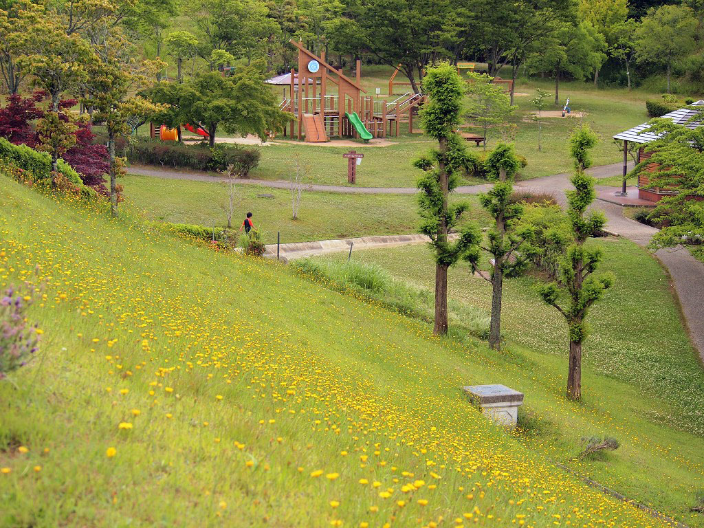 園内に小川が流れ、子供たちの歓声があがっています。