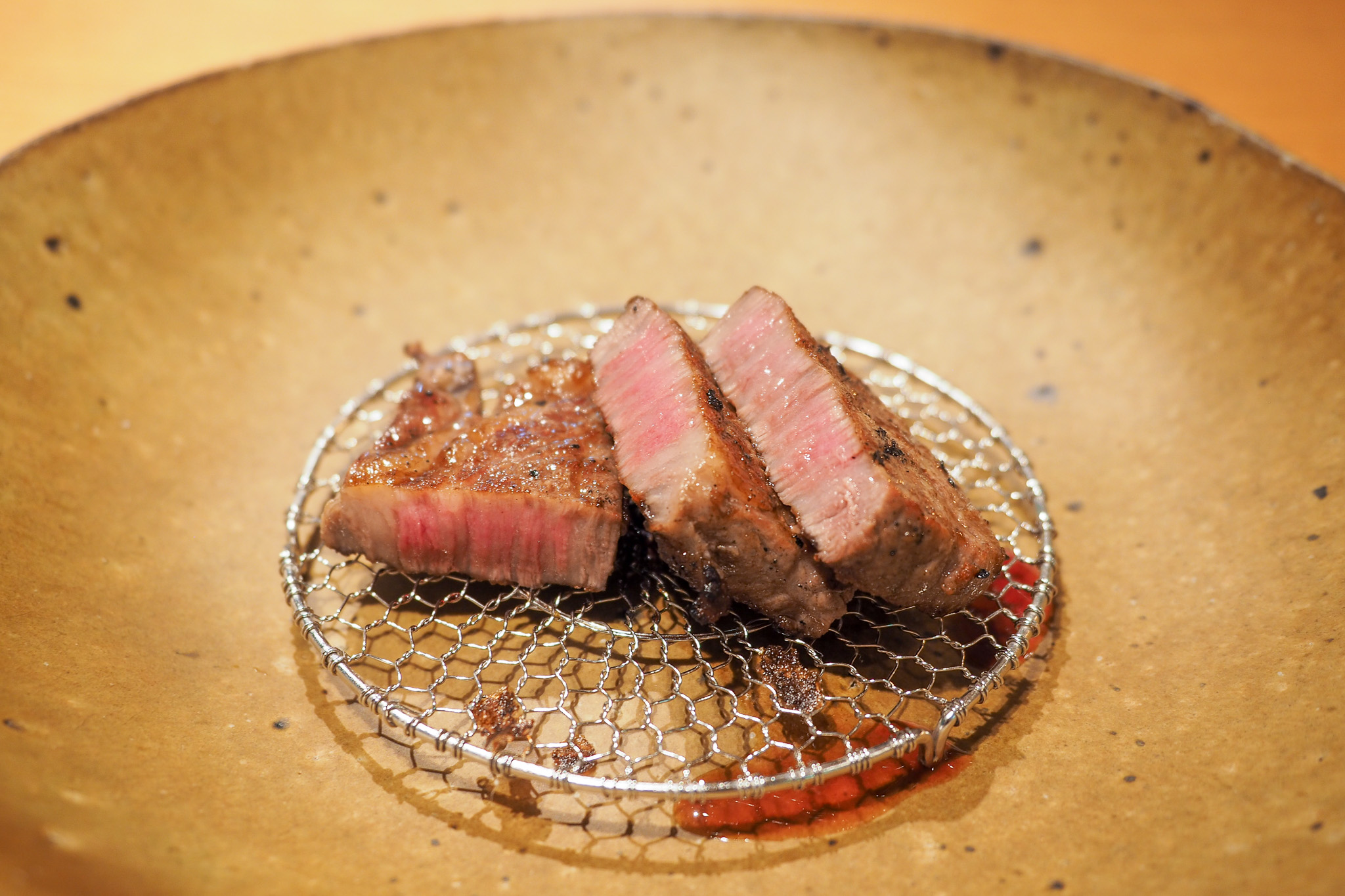 そしてあべ牛赤身サーロインは、市場には出ていない出産回数2回にこだわった経産牛のあべ牛。こちらも旨味、食感を楽しめるやわらかさともに印象的。