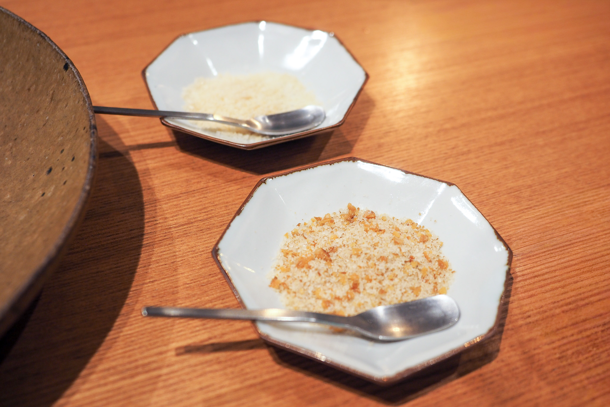 味わいが異なる塩は、交互につけて永遠に食べ続けたくなります。