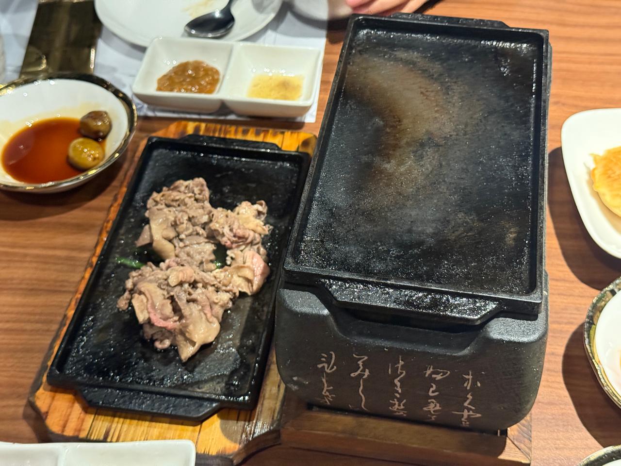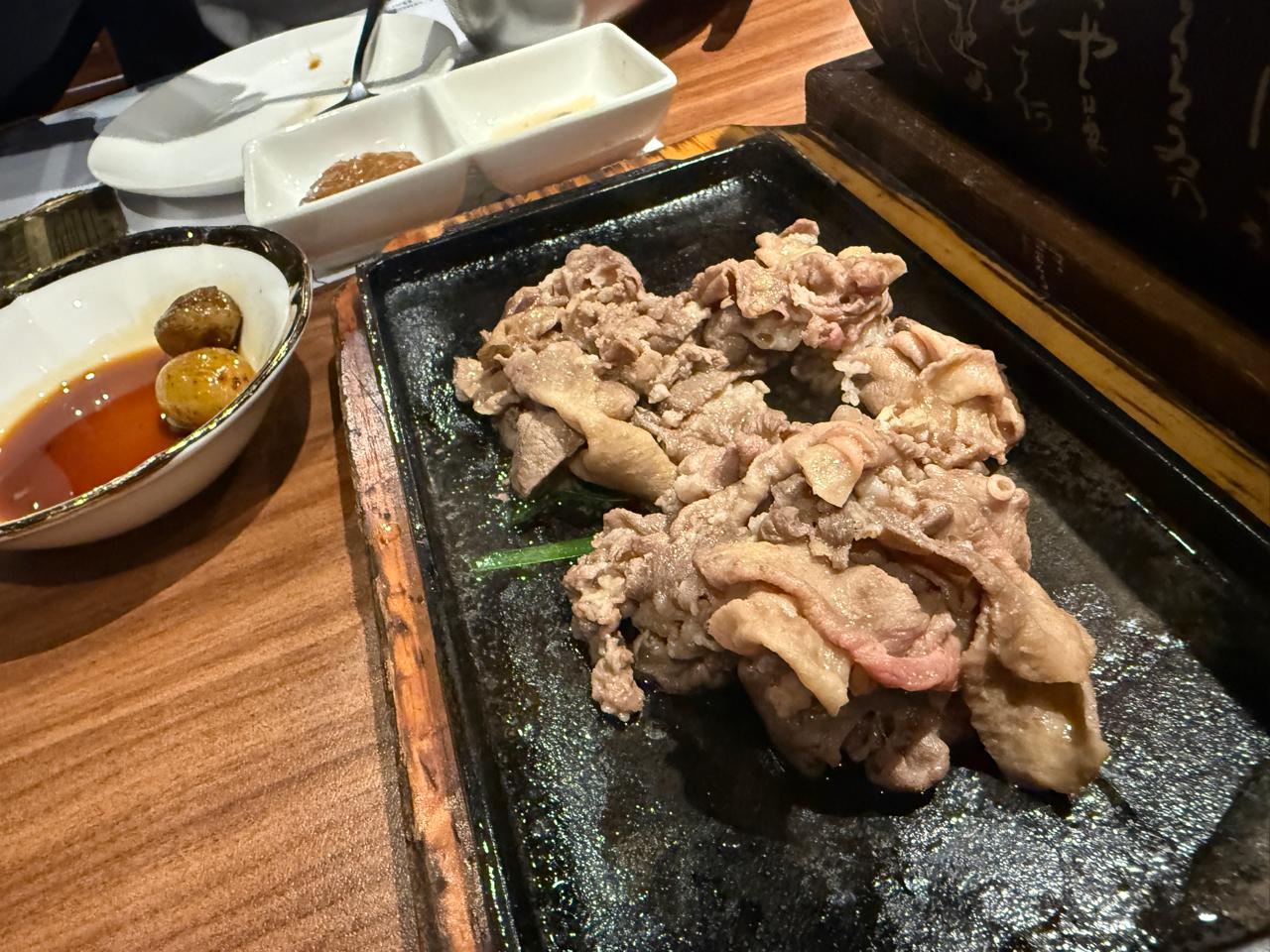 今日はユッケ、焼肉でタンと味付けカルビ(薄切り)のみですが
