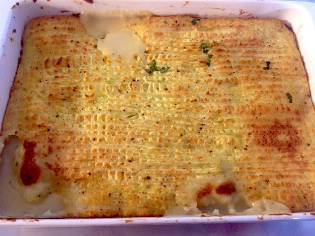 フィッシュパイも魚や海老をマッシュポテトで覆いオーヴンで焼いた料理で、いわばシーフードとマッシュポテトのグラタンと言えます。