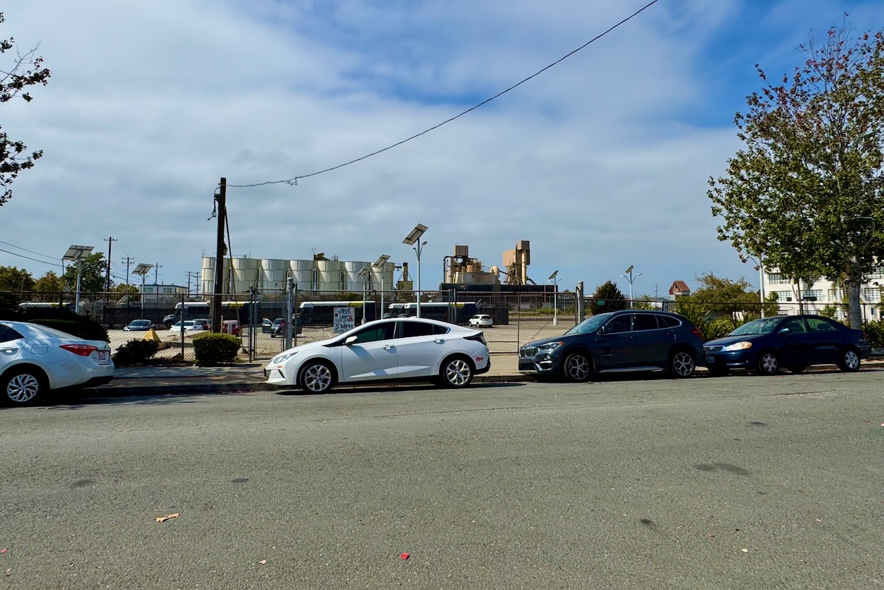 テスラのショールームあたりから倉庫っぽい感じの道になります。