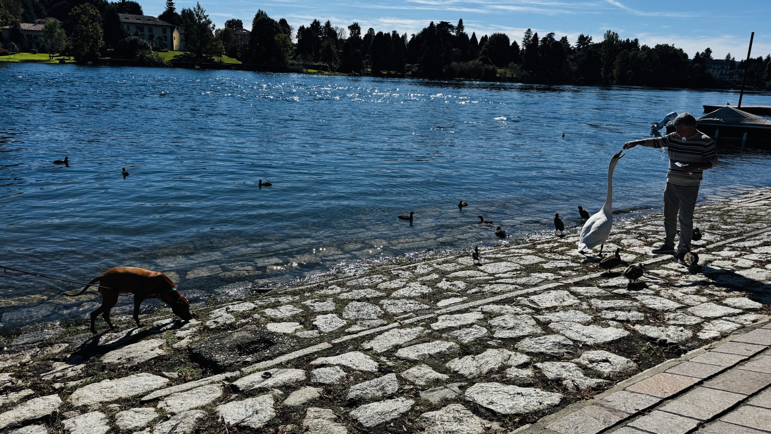 食後はティチーノ川沿いをお散歩。久しぶりの晴天なので、歩くだけでウキウキします。が、愛犬が夏の間に水好きになってしまい、川に入りたがってややこしい!少しだけ足をつけたけど、物足らず、早々に退散することにしました。パンケーキも楽しめ、美しいリバーサイドも楽しめる、ちょうどいいお出かけスポットとなりました。