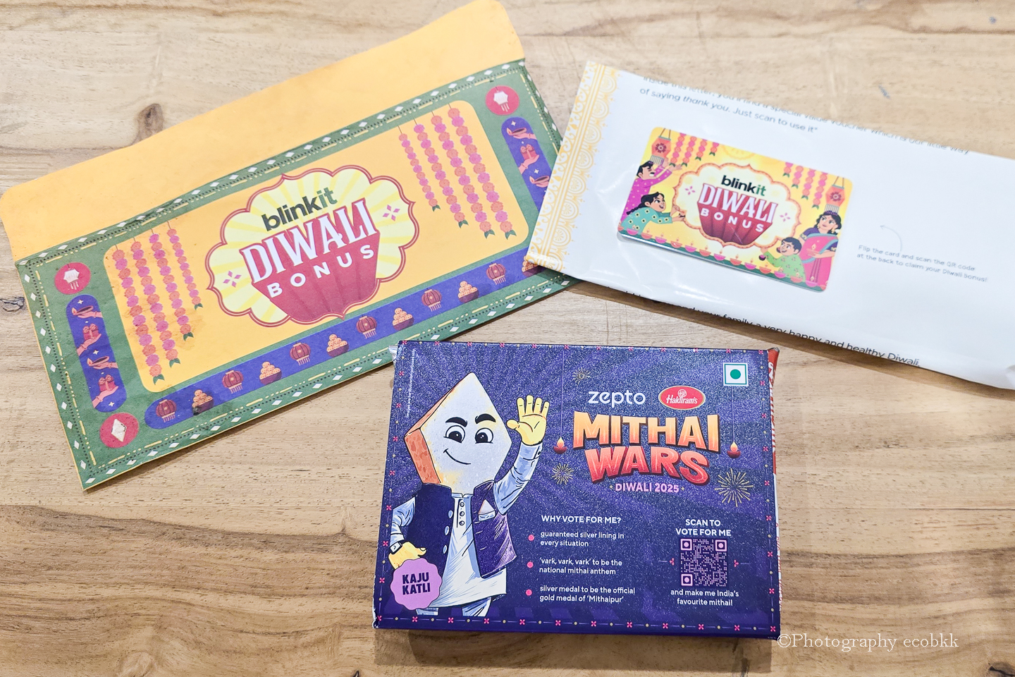 デリバリーサイトでは、Diwaliのお祝いで配るためのギフトも充実しており、一定金額以上の買い物をすると、おまけで、Diwaliをお祝いするインドのお菓子等がついてくるようになりました。