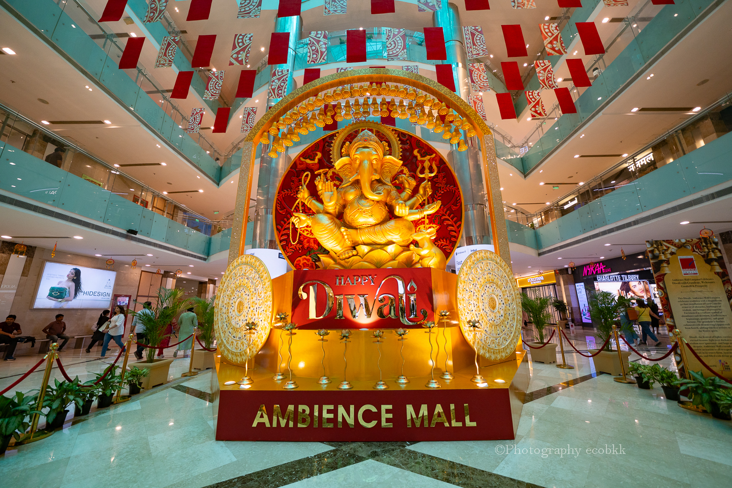 街中のショッピングモールのガラスや看板には、「Happy Diwali」の文字が至る所で見られるようになっています。