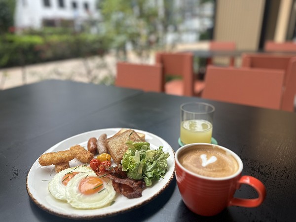 天気の良い日には、テラス席で朝日を浴びながらのんびり。