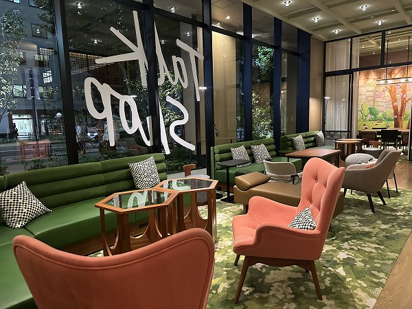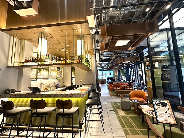 ・Talk Shopで自由な滞在:コーヒーやハンバーガー、カクテルを楽しめるオープンスペース
