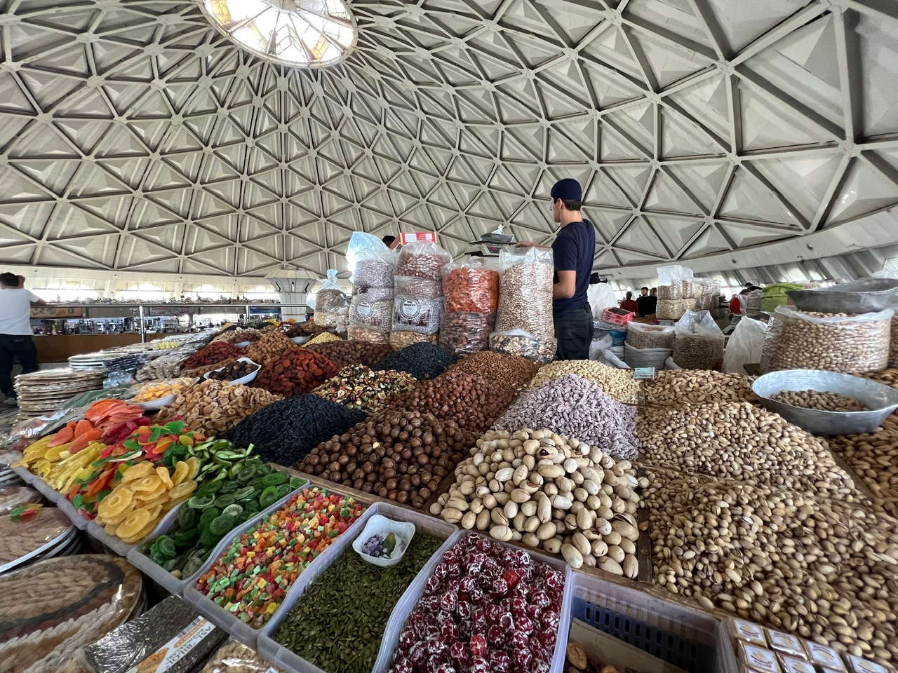 チョルスーは「交差点」という意味で、古来からシルクロードを通じて多くのものが運ばれてきたタシュケントの歴史を感じることのできる場所の一つです。新鮮な食材はもちろんのこと、日用品から伝統工芸品、紅茶、お土産、家具まで何でも揃います。