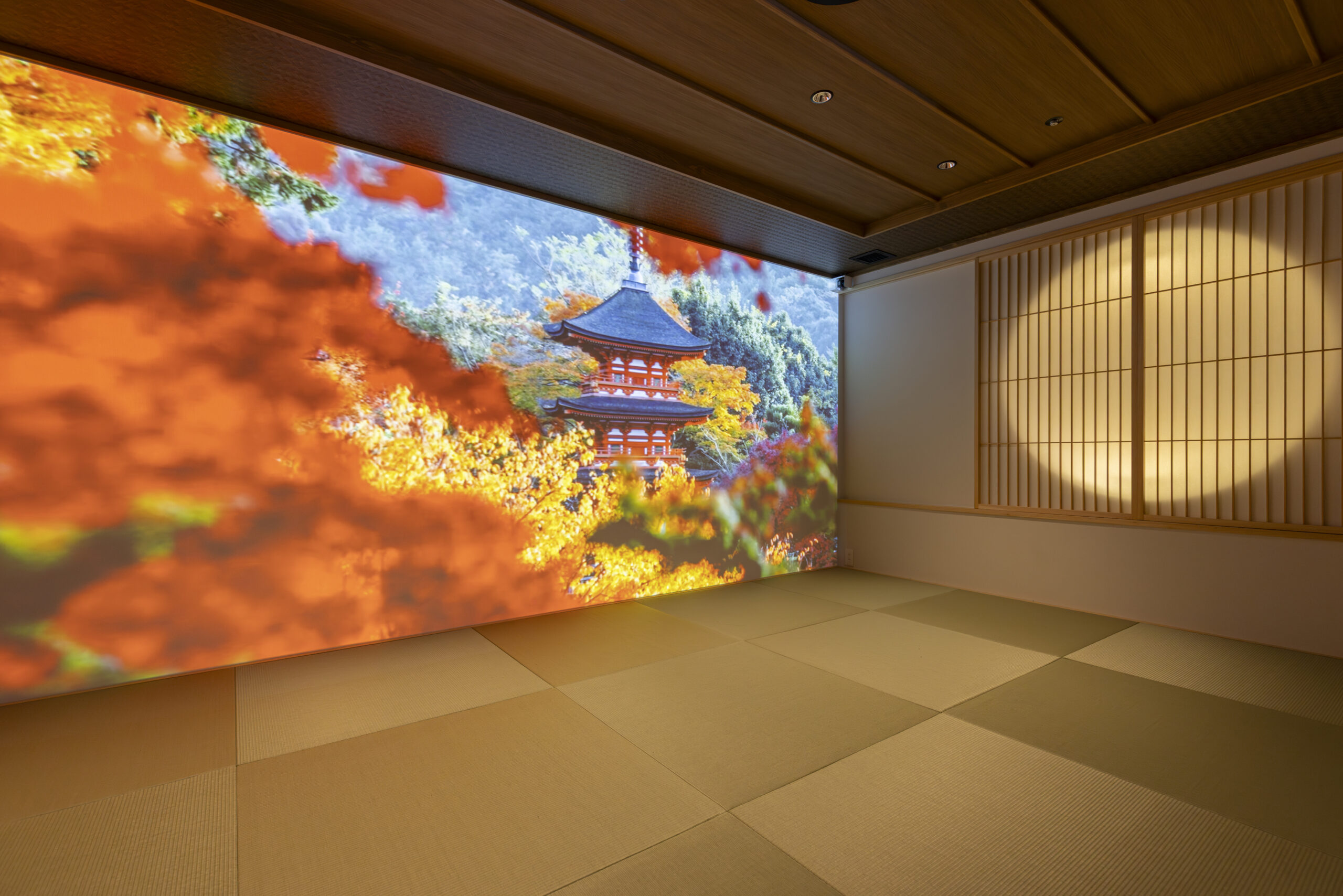 温故知新を体現した、伝統とテクノロジーが融合したデジタル茶室では、梅村尚子先生によるお茶の解説を聞きながら、新しい茶の湯の形を体験しました。世界中から観光客が来る京都の宿とあって英語や中国語での説明も用意しているのだそうです。