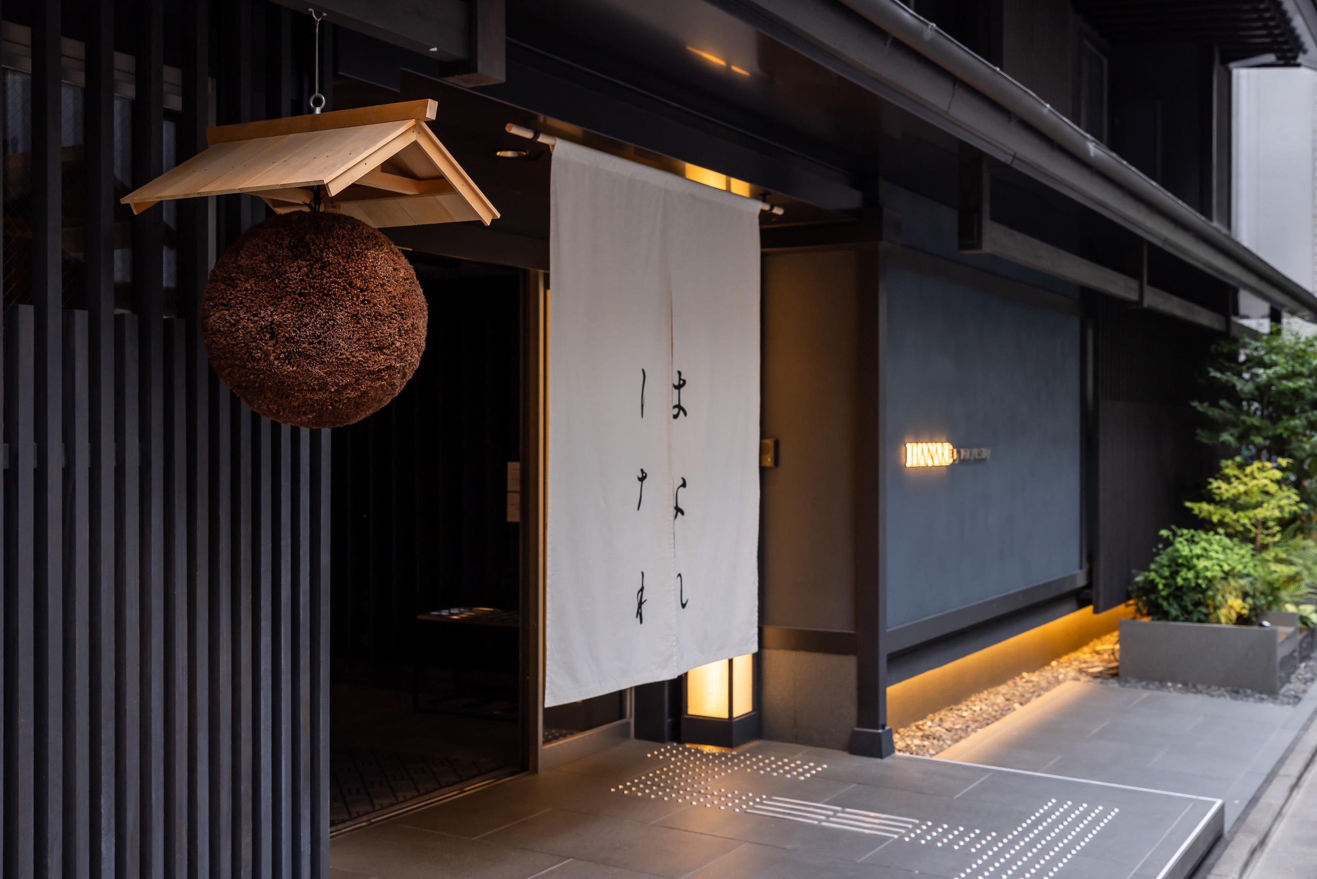 エントランスの「はなれ」の暖簾をくぐると、暖かな光と静けさに包まれた落ち着いた空間が広がっていました。京都の烏丸御池駅から徒歩2分という好立地は、何度も京都を楽しむリピーターにとっても、京都の旅が初めての方にもぴったりです。