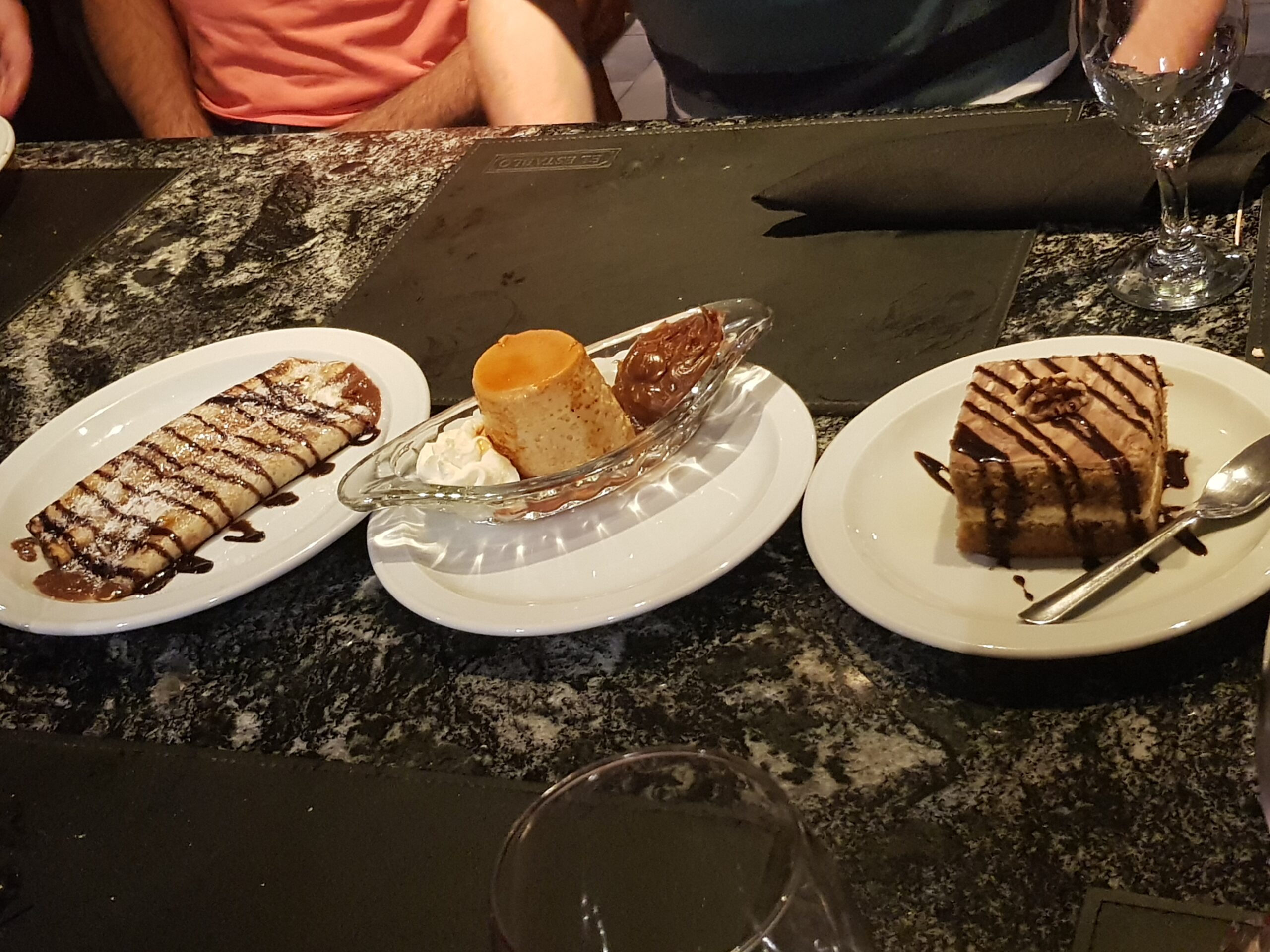左から人気のデザートであるパンケーキ(ドゥルセデレチェ入り)、プリン、そしてティラミスです。