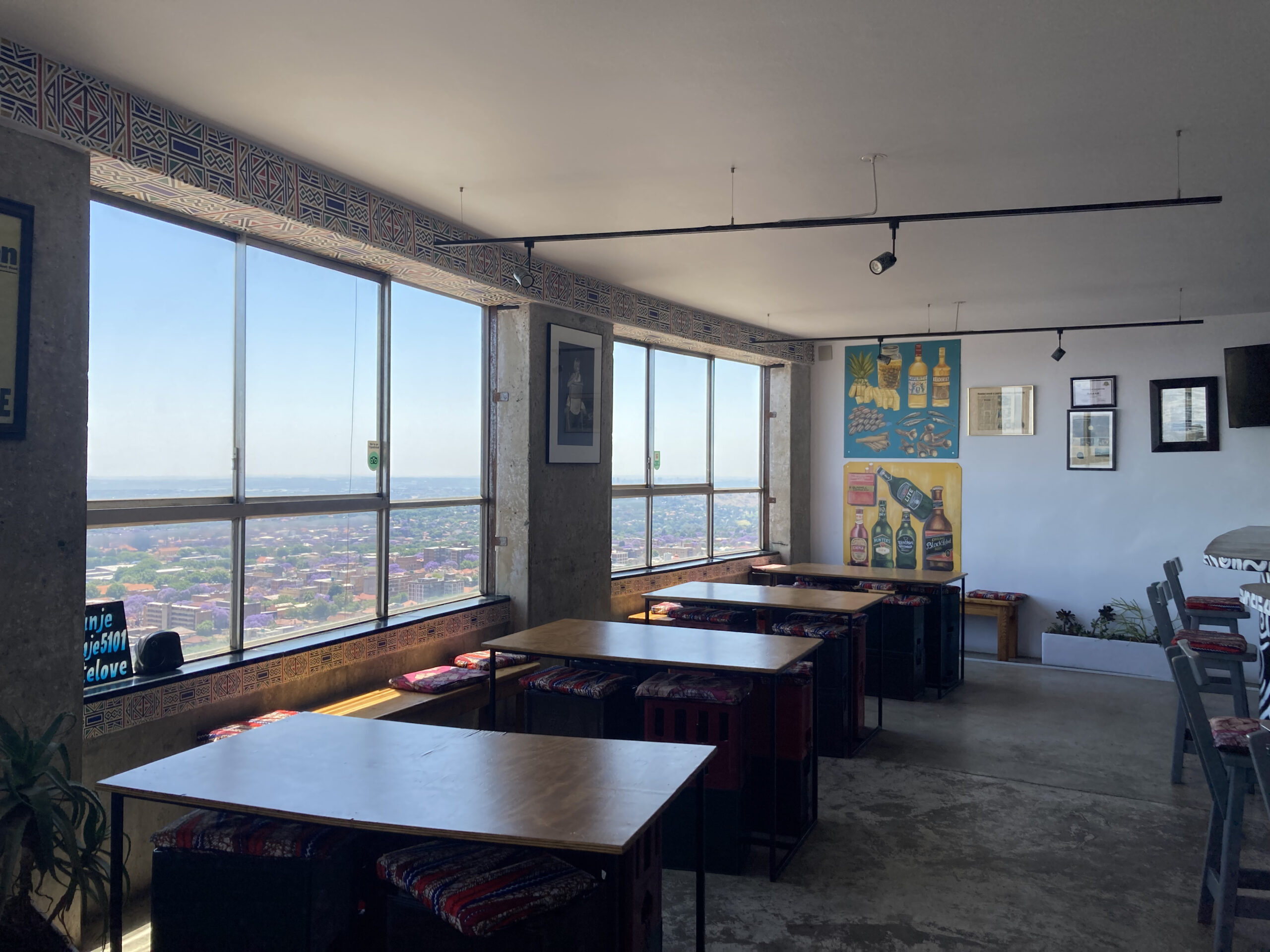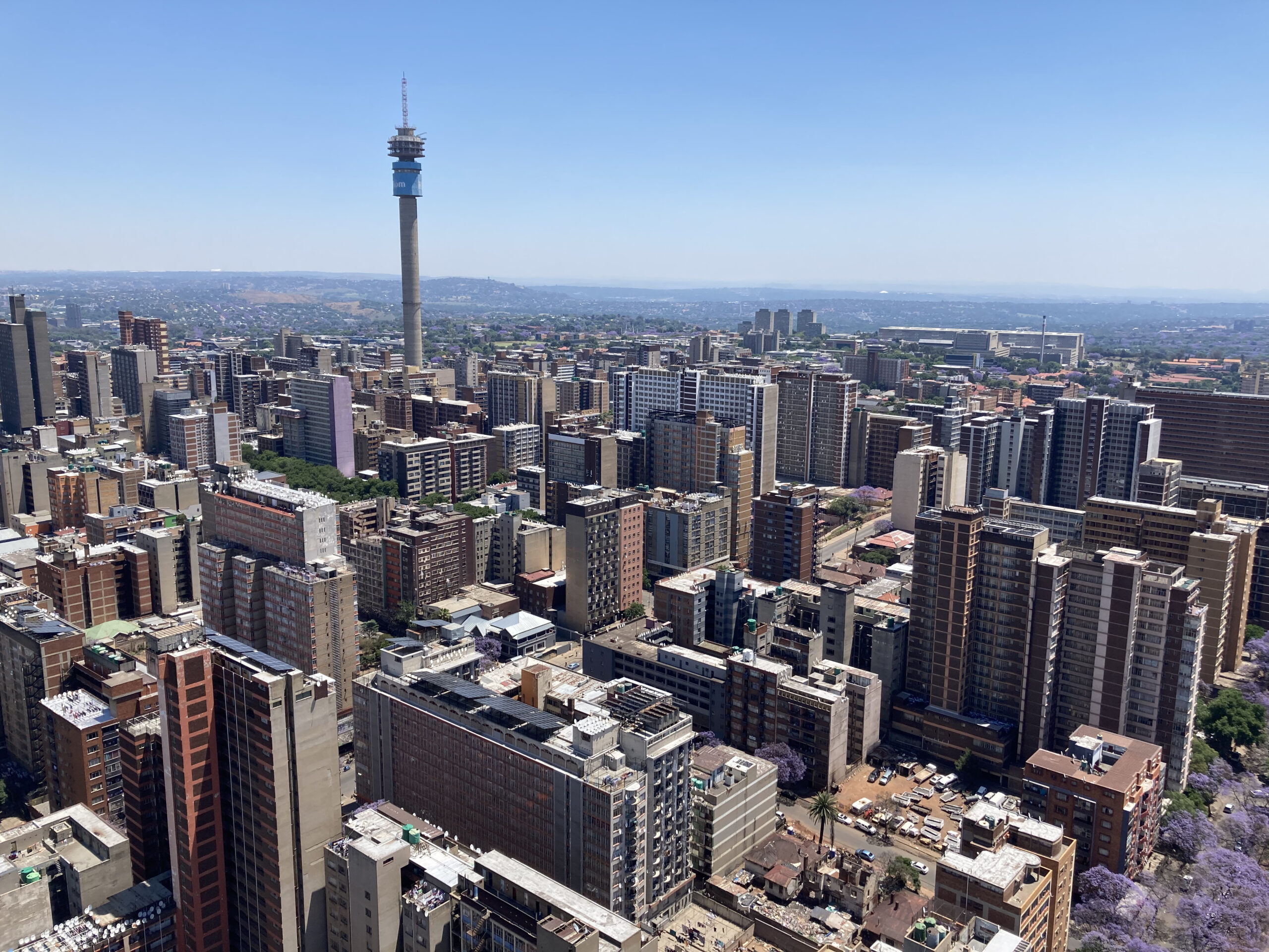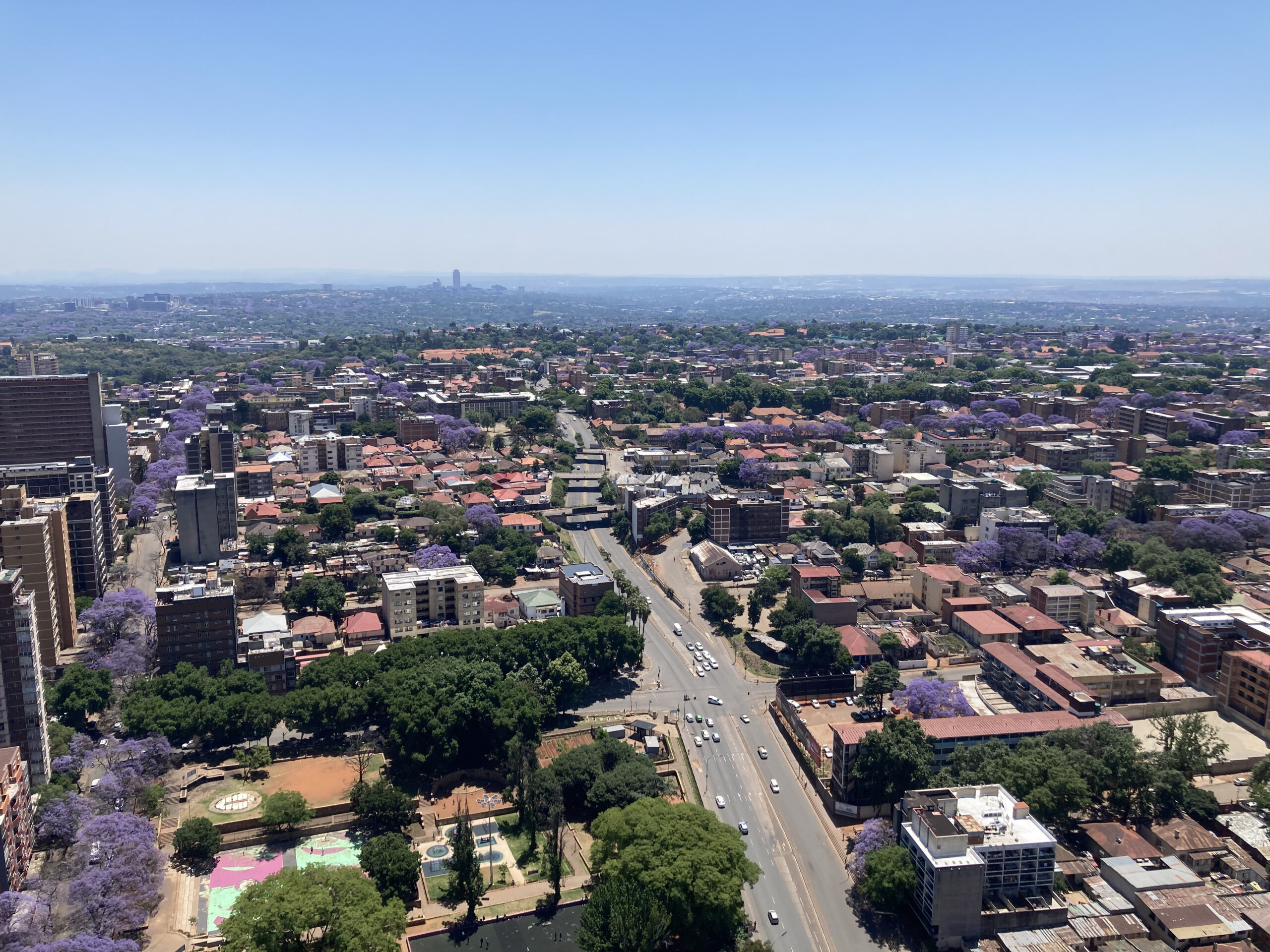 51階にダラニェが保有しているイベントスペースがあります。ここからはヨハネスブルグの街並みが一望できます。上から見ると、ジャカランダがどこに咲いているかが一目瞭然です。