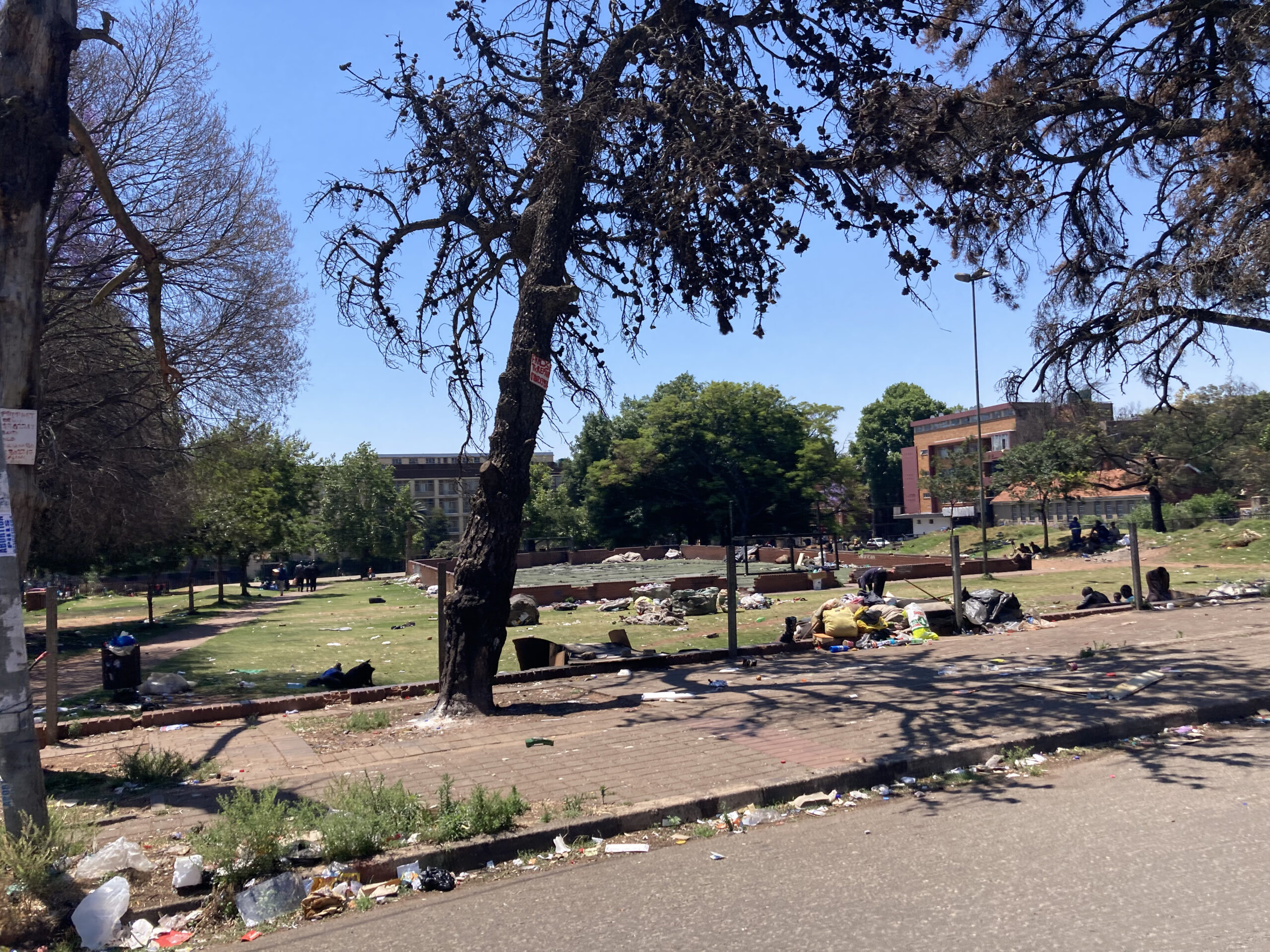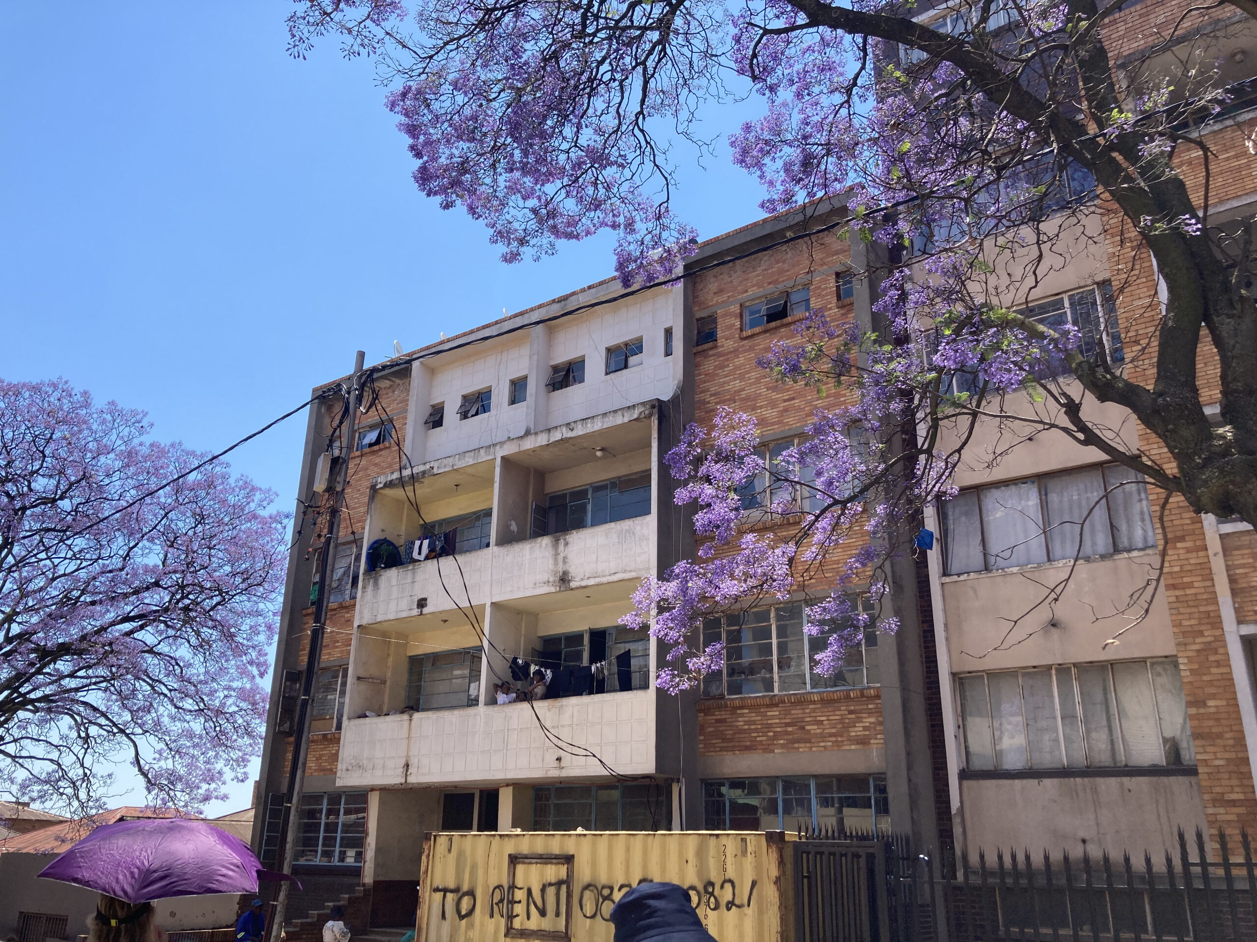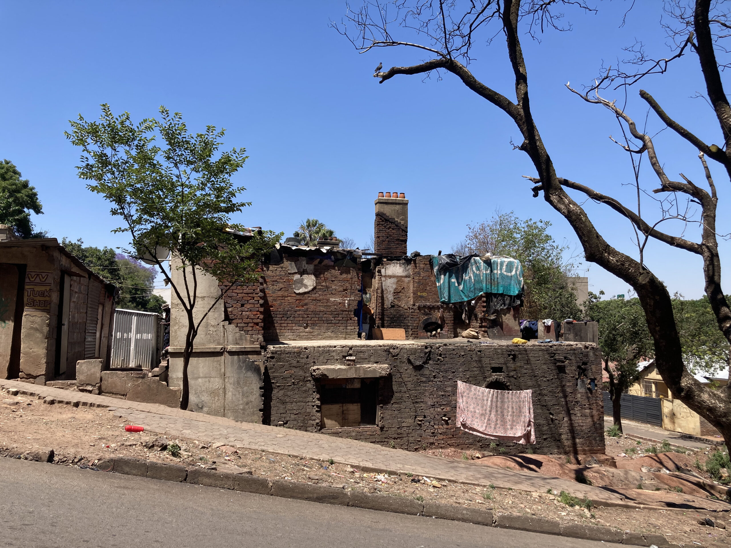 ヒルブロウには現在もハイジャックされた建物があります。ハイジャックされた建物は賃貸に出され、ハイジャックした犯罪者は住人から賃料収入を得ます。実際に今ハイジャックされていると言われている家の前を通りました。その物件は月R600(5000円弱)だそうです。