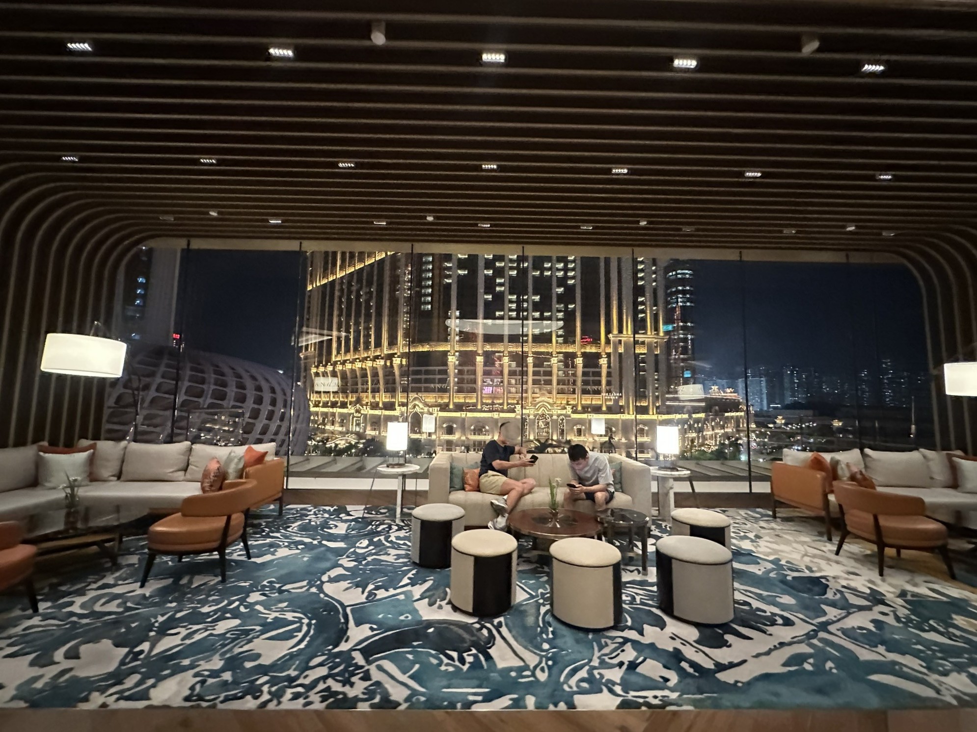 窓の外にはコタイ地区の夜景が広がり、静かで上質な時間が流れます。