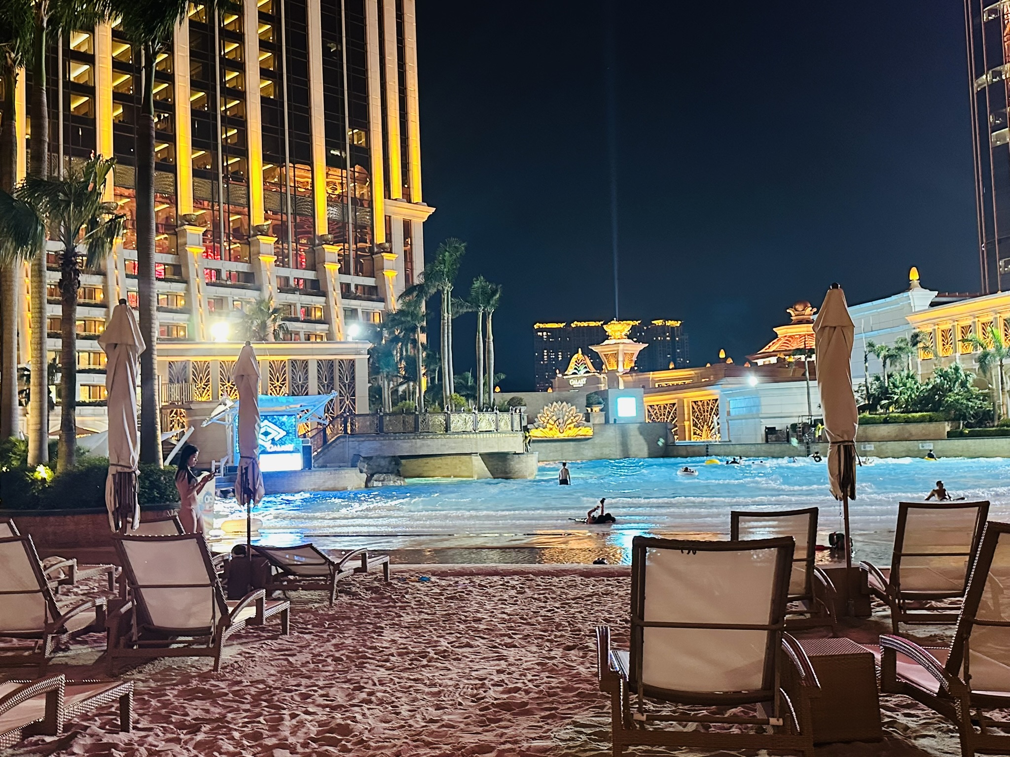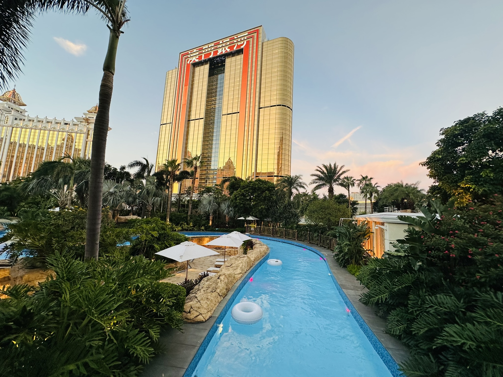 敷地内の「グランド・リゾート・デッキ」は、ギャラクシーリゾート内のホテル宿泊者だけが入場できる巨大な屋外ウォーターパークです。約7万5000平方メートルの広さがあり、マカオ最大級のスケールを誇ります。