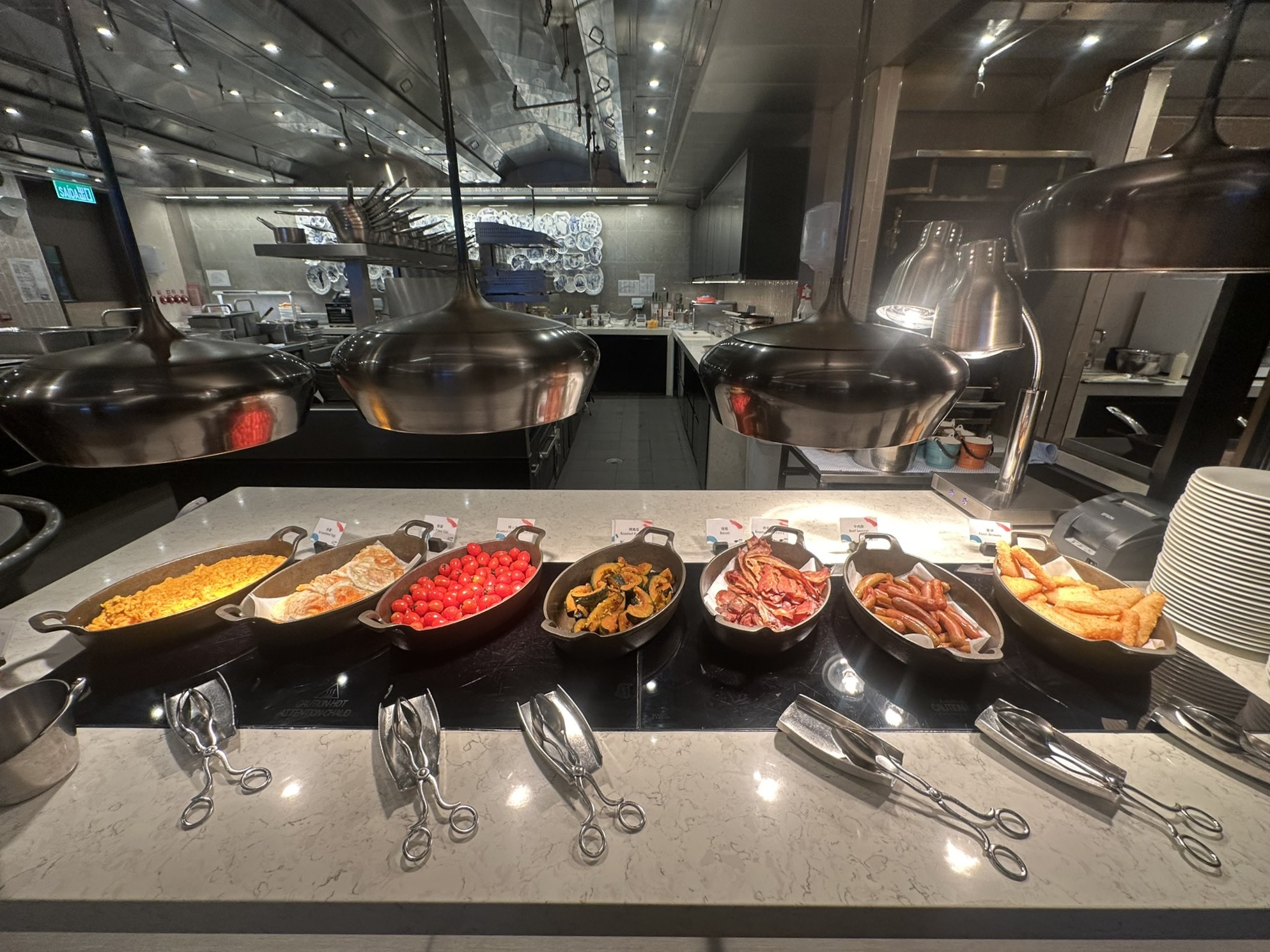 ライブ感あふれるオープンキッチンでは、音と香りが食欲を刺激します。