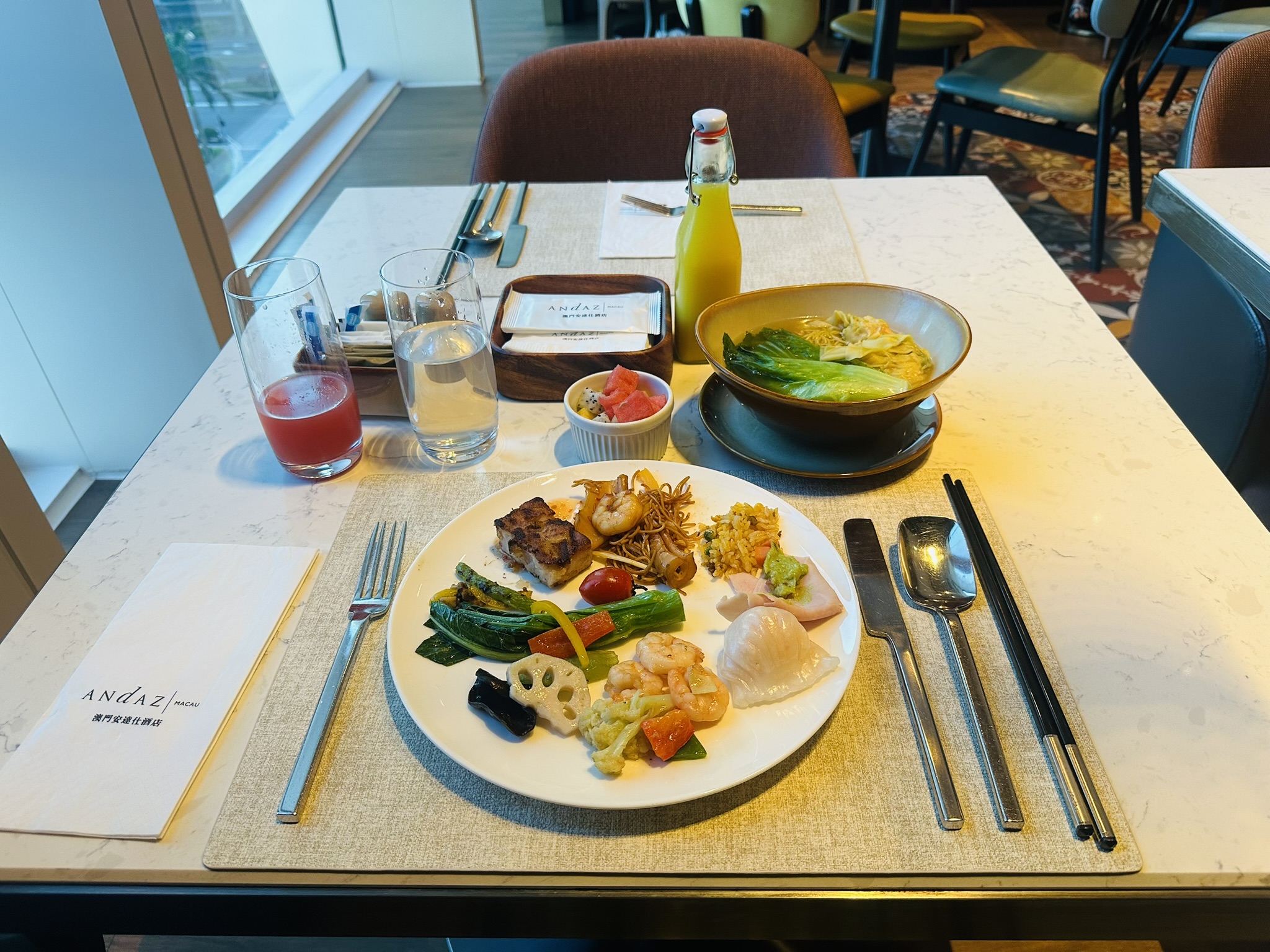 人気の朝食ビュッフェでは、数種類の麺やお粥、飲茶などの中国料理をはじめ多彩な料理が並び、マカオの食を堪能できます。