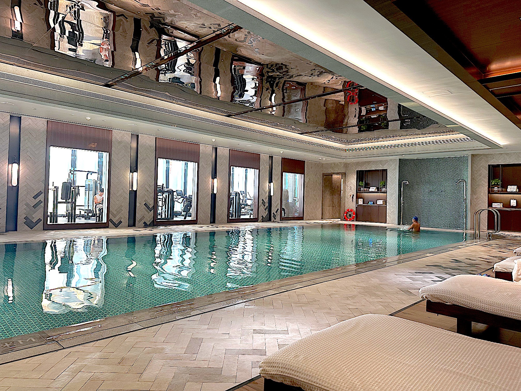 天候を気にせず楽しめる温水屋内プールは長さ19m。落ち着いた照明と静かな水音が心地よく、非日常の癒し空間です。7時~22時まで利用することができ、旅の合間にリフレッシュできます。
