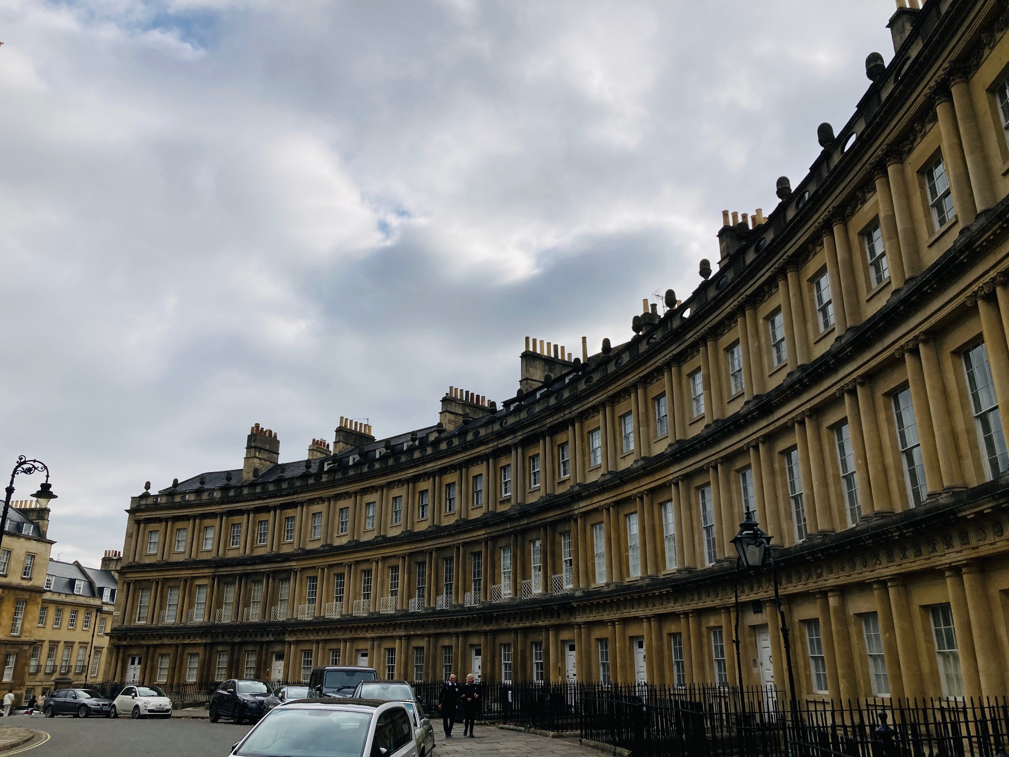 なかでも有名なのは、三日月のような曲線を描く家並みロイヤル・クレッセント。バース中心地から少し坂道を上って向かう途中にあるザ・サーカスとともに、建築家ジョン・ウッド父子が2代で築いた優美な佇まいはバース観光名所のひとつです。