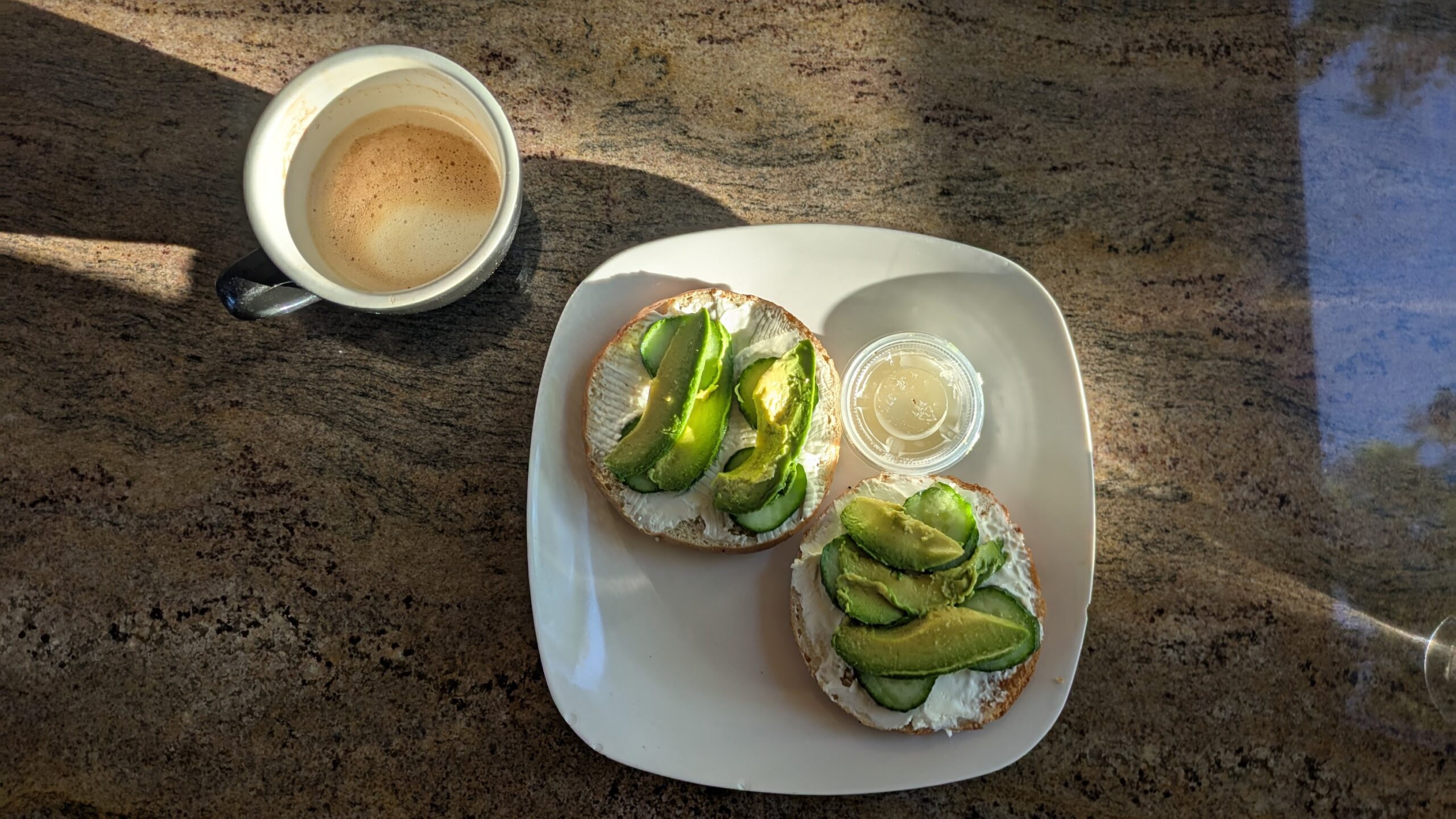 筆者は、Special Bagle(ベーグルにクリーム・チーズ、アボカド、レモン汁が載ったオープンサンドイッチ)とオーツミルクラテを頼んでみました。