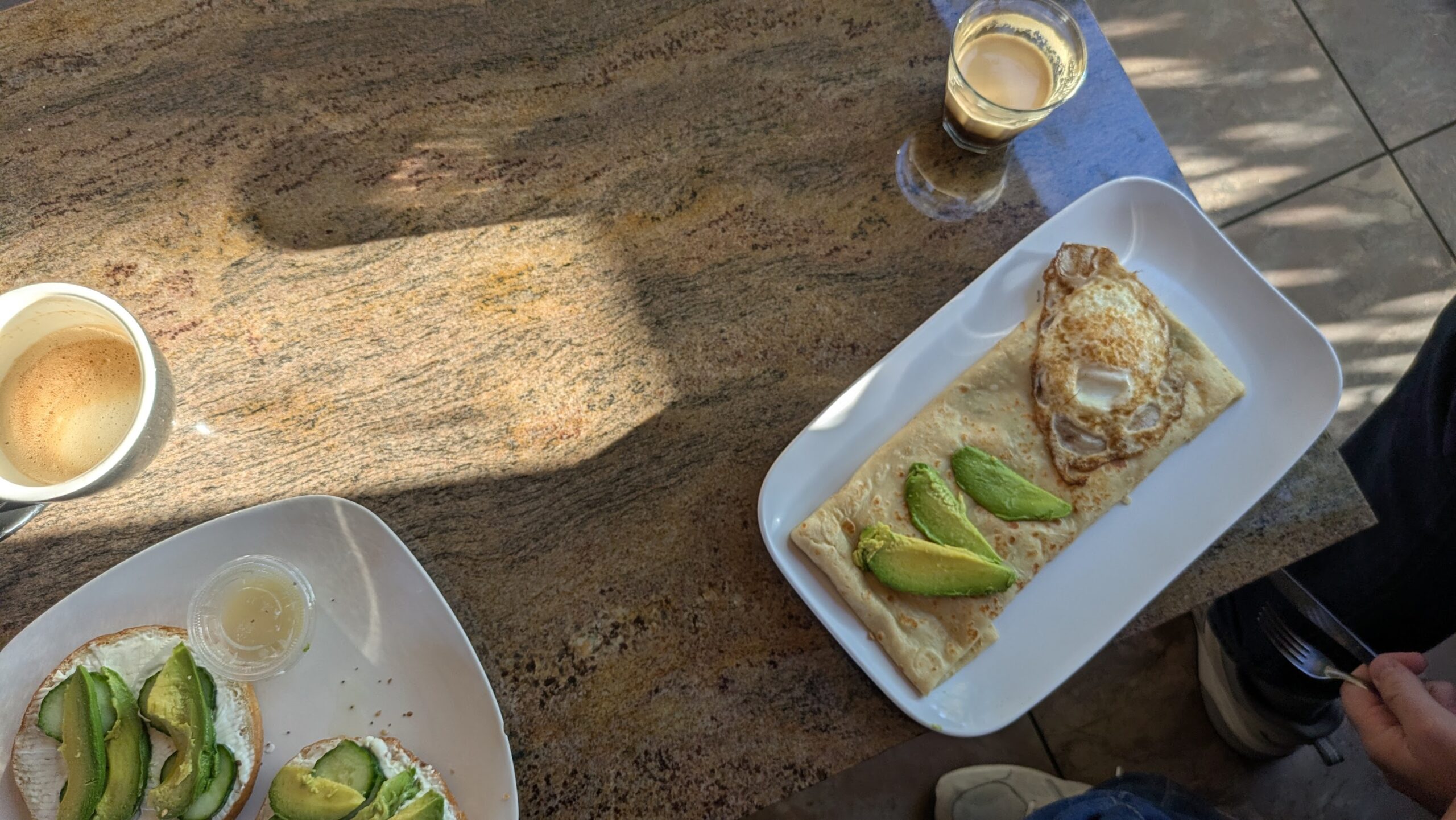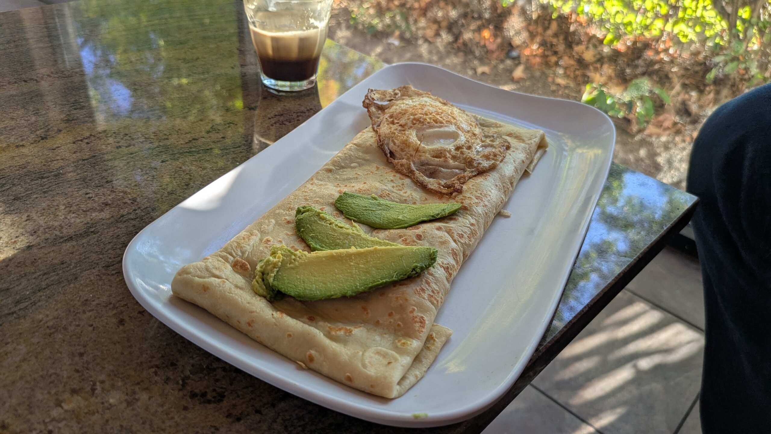 筆者の旦那様は、Giovanni Crape(ターキーハムとチーズとほうれん草が巻かれたクレープの上に目玉焼きとアボカド)とThe Cubano。