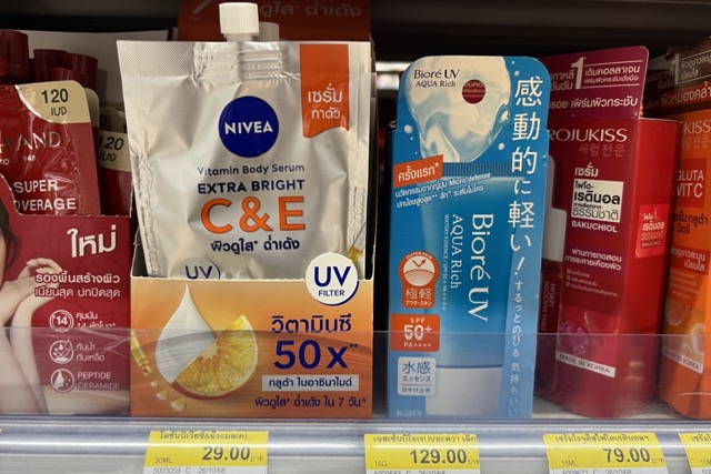 セブンにはNiveaやビオレなど、日本でもおなじみのブランドがそろっています。