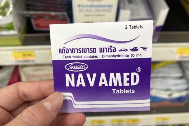 タイでは長距離移動の際にバスや船を利用することも多いですが、そんなときに役立つのが酔い止め薬。