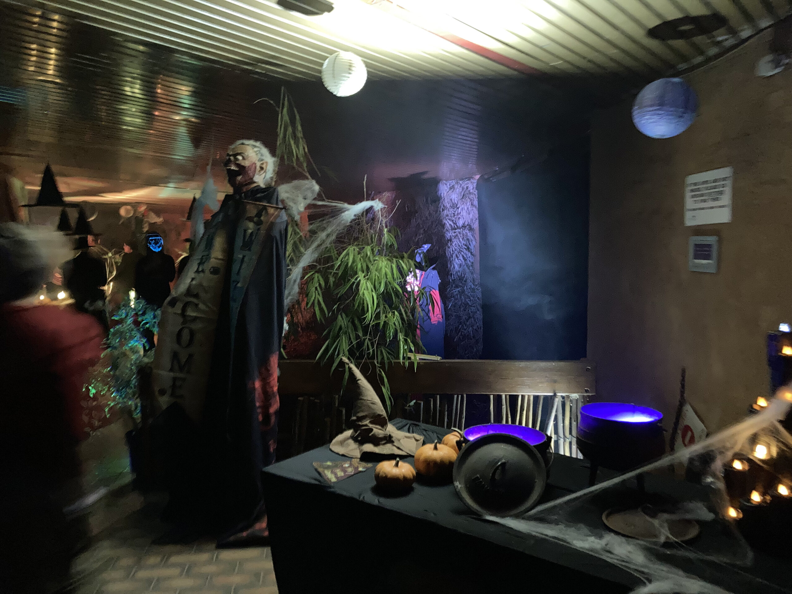 まずは1つ目の見どころがこちら、魔女がテーマのお化け屋敷です。中はかなり暗く、スモークが炊かれていました。