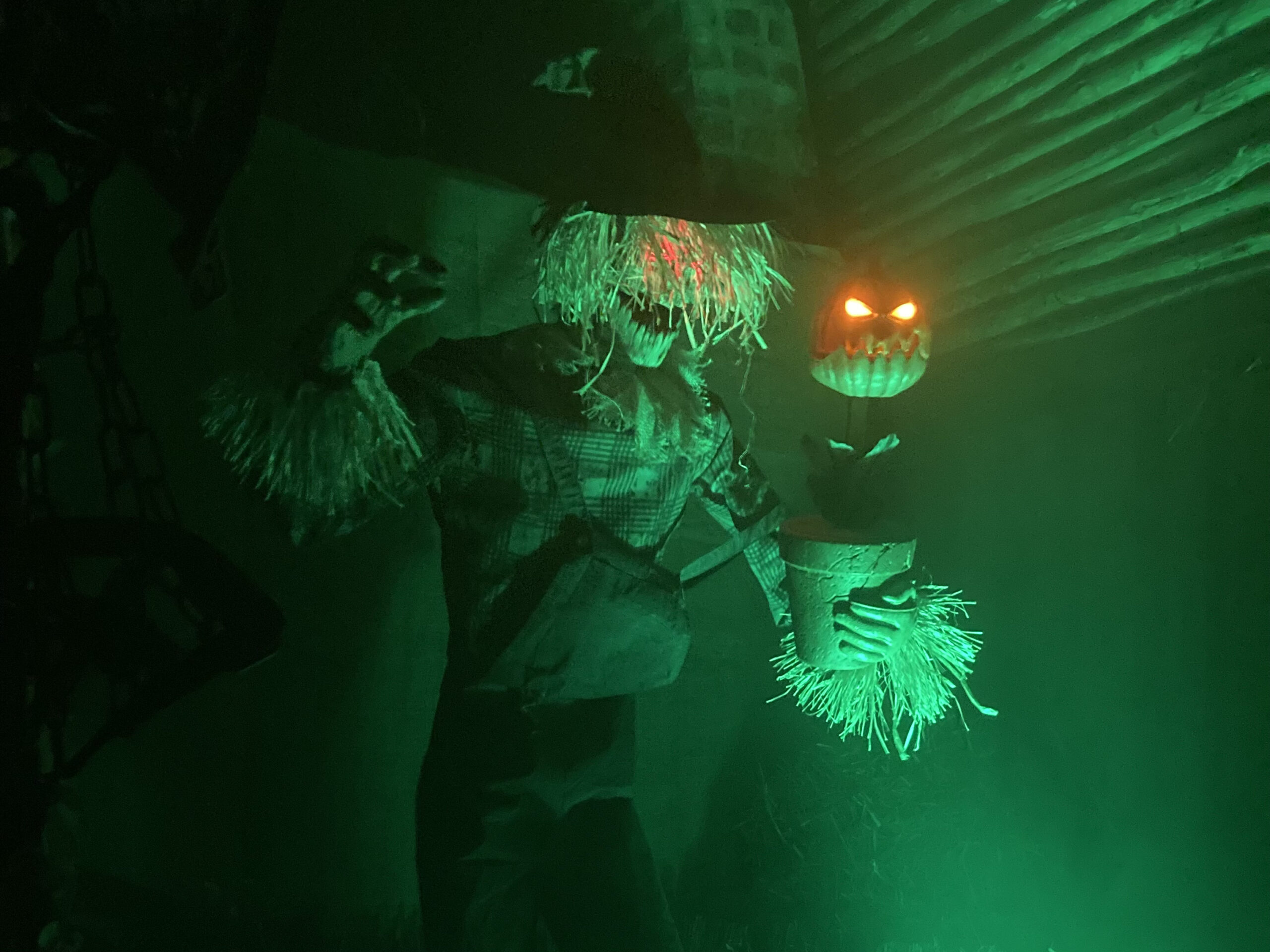 普段は爬虫類が展示されている小屋の中に仕切りで通路が作られ、迷路のようにくねくねの通路を歩いて行きます。ところどころに隠れているキャストが脅かしてきたり追いかけてきます。農場がテーマのお化け屋敷なので、カカシ風のお化けが多く登場しました。最後は銃声と共に農場の主らしき男性が登場し「出ていけー!!」と追い出されながら外へ出て終了です。
