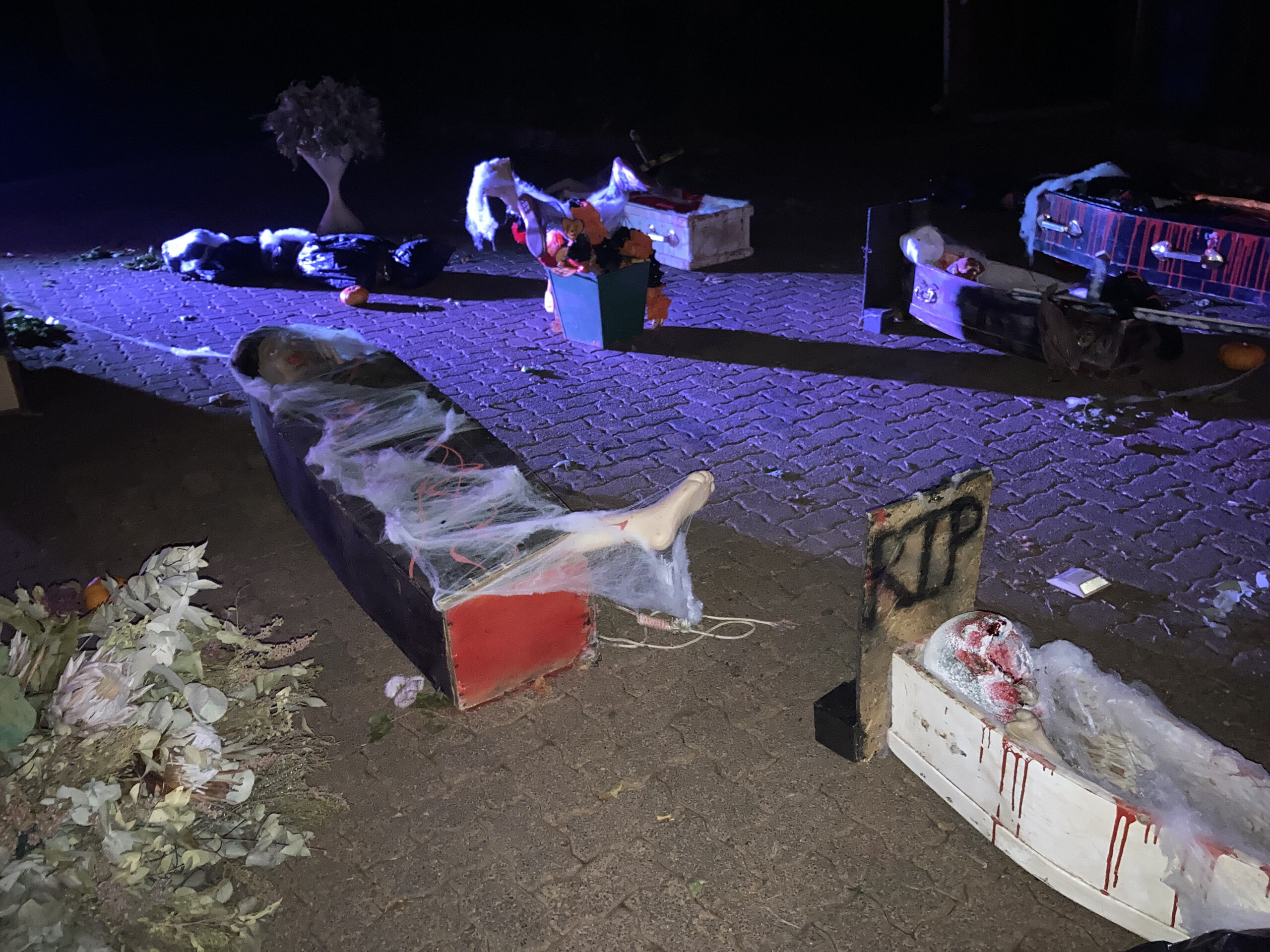 普段解放されていない小屋が『アダムスファミリー』というテーマで装飾されていました。アダムスファミリーといえば現在Netflixでドラマ版が配信されており南アフリカでも大人気です。園内にはアダムスファミリーに登場するキャラクター、ウェンズデーの仮装をした子供もたくさん見かけました。
