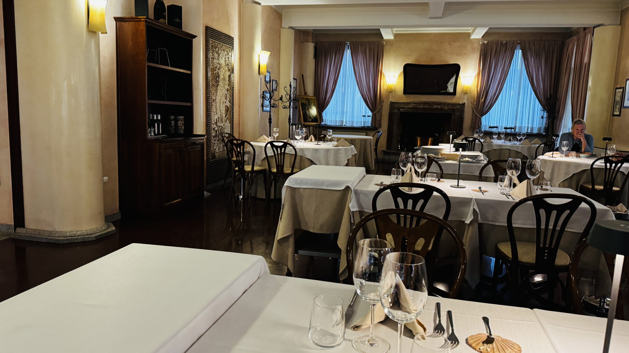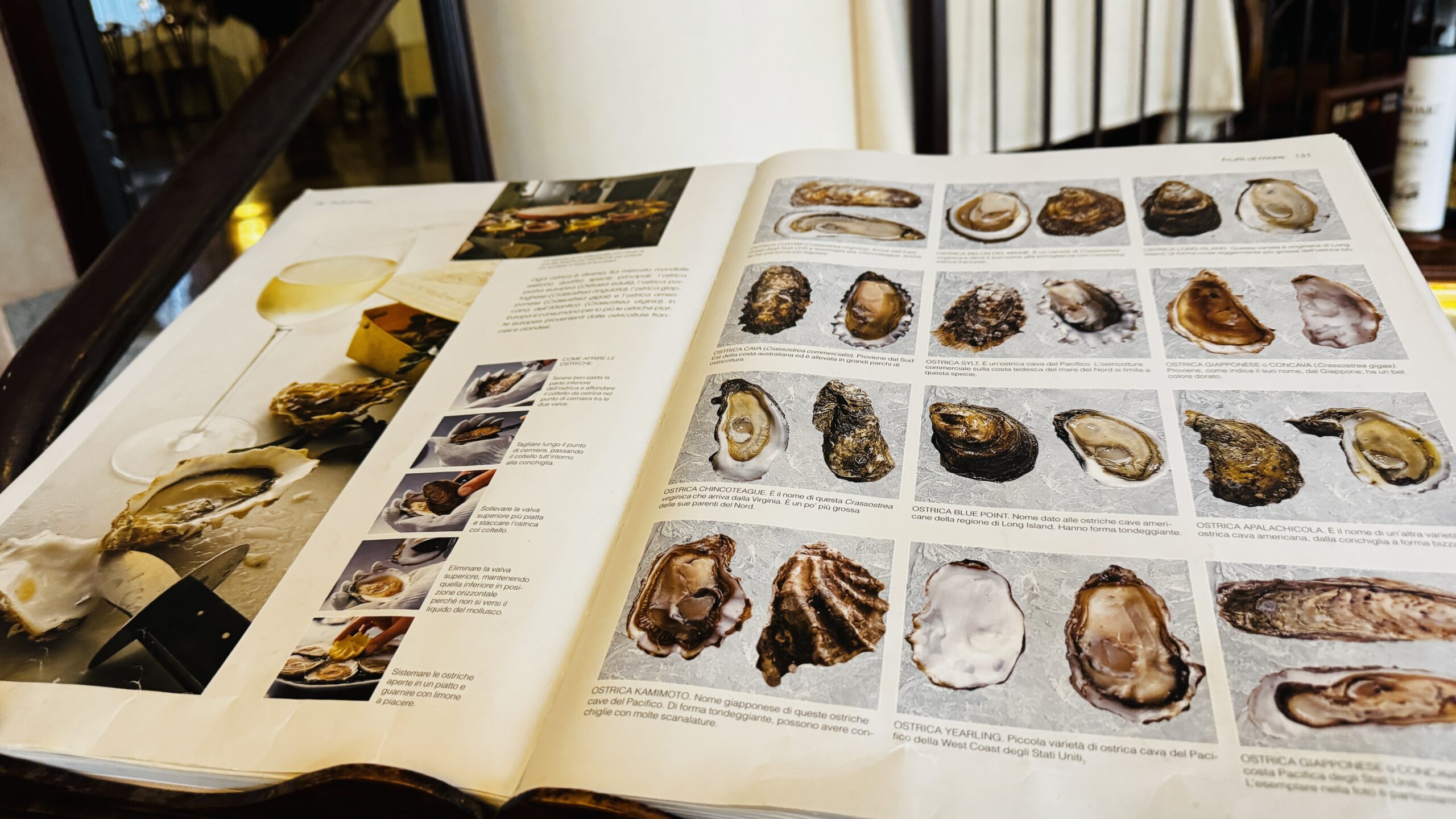 クラシカルでシックな店内。こちらのレストランは、ノルマンディー、ブルターニュ、シャラント、パリ、コート・ダジュールのビストロで楽しまれていたカキ、魚介類、貝類、ウニなどをミラノ郊外で食べられるように開業されたそう。生の魚介類を直接輸入ルートにより、海から揚げらてすぐの魚介を食べられるというポリシーがあります。水曜は生牡蠣、木曜はキャビア、とある曜日はウニなど、鮮魚をめいいっぱい食べられるイベントも実施していて、次回はそちらにも参加してみたいです。
