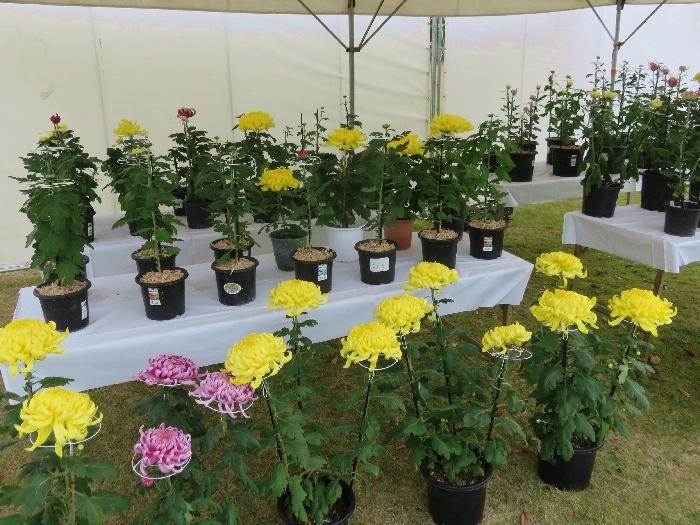 会場内、各所で「菊池市菊まつり推進委員会」の皆さんが心を込めて育てられた大菊をはじめ小菊や懸崖、盆栽、そして、菊人形などの作品と地元小学校、中学校、高校生が育てた菊を展示。会場内、菊! 菊! 菊! 菊の持つ清らかで上品な美しさを楽しむことができます。