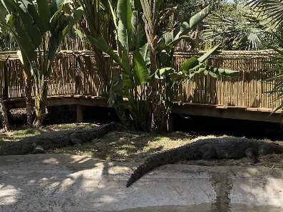 檻の中は安全と聞いていましたが、檻の横に来た時、檻の隙間からワニの手がこちら側にすっぽり入ってきていたので、引っかかれる可能性は十分あるなと感じました。