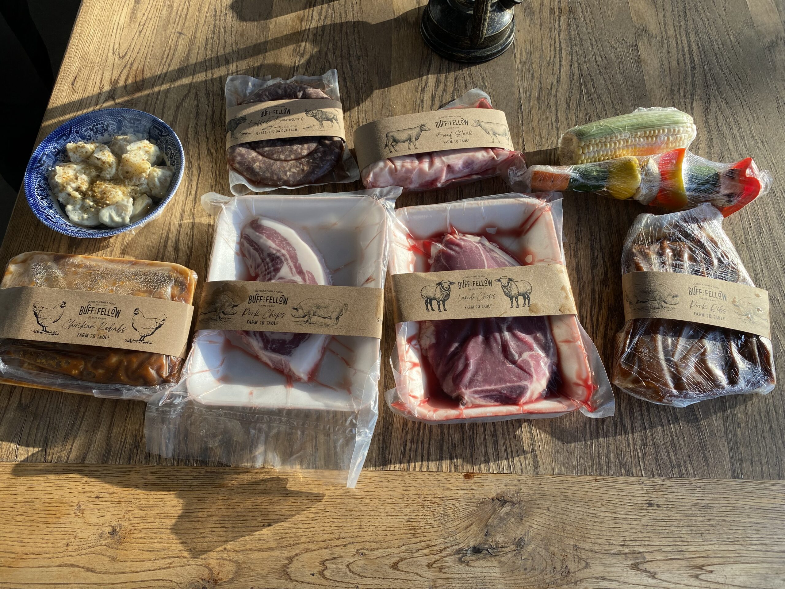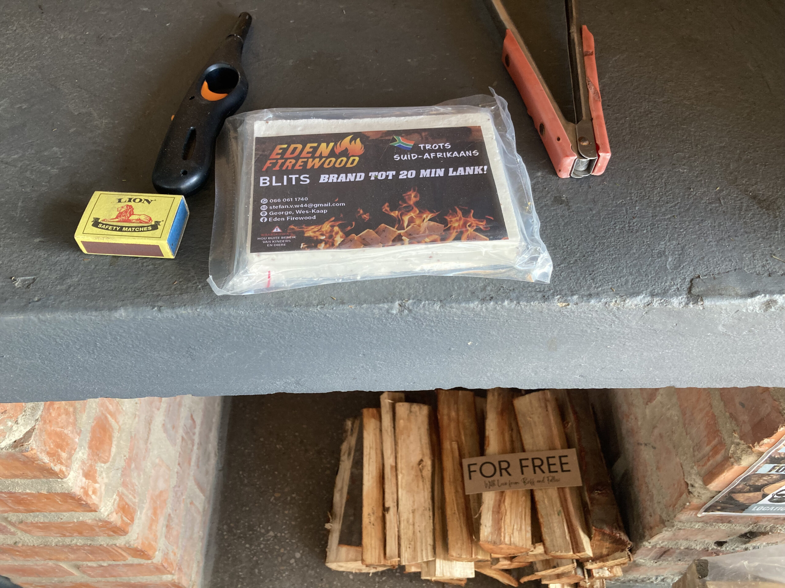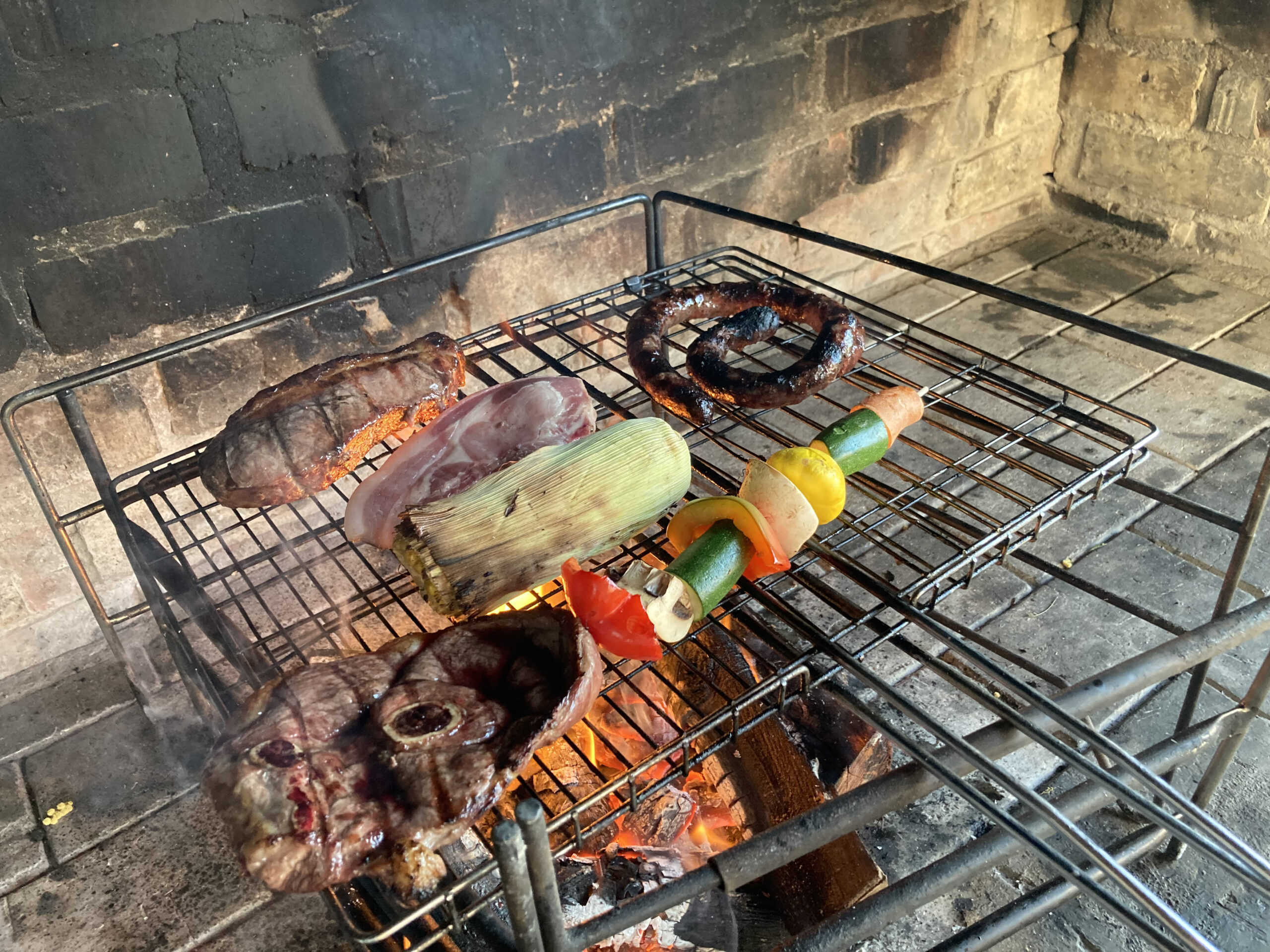 南アフリカ式バーベキュー、ブライ用の食材を注文しました。肉はこの農場内でとれたものだそうです。南アフリカの国民食であるボルボスというソーセージももちろん入っています。