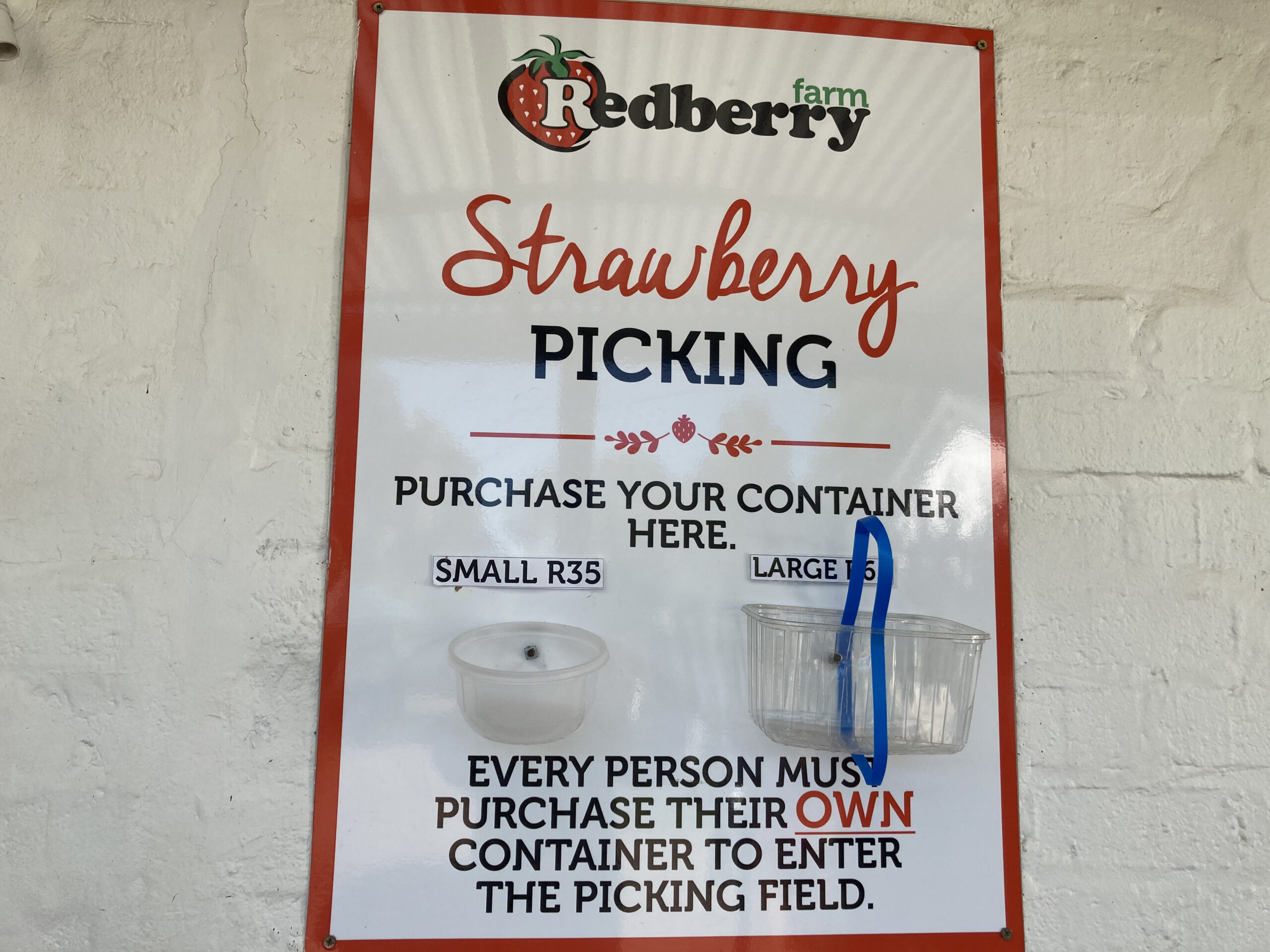 いちご摘み体験は、摘んだいちごを入れるカップの大きさで料金が異なります。小さいサイズはお茶碗ほどの大きさで、なんとR35(約280円)とリーズナブル!