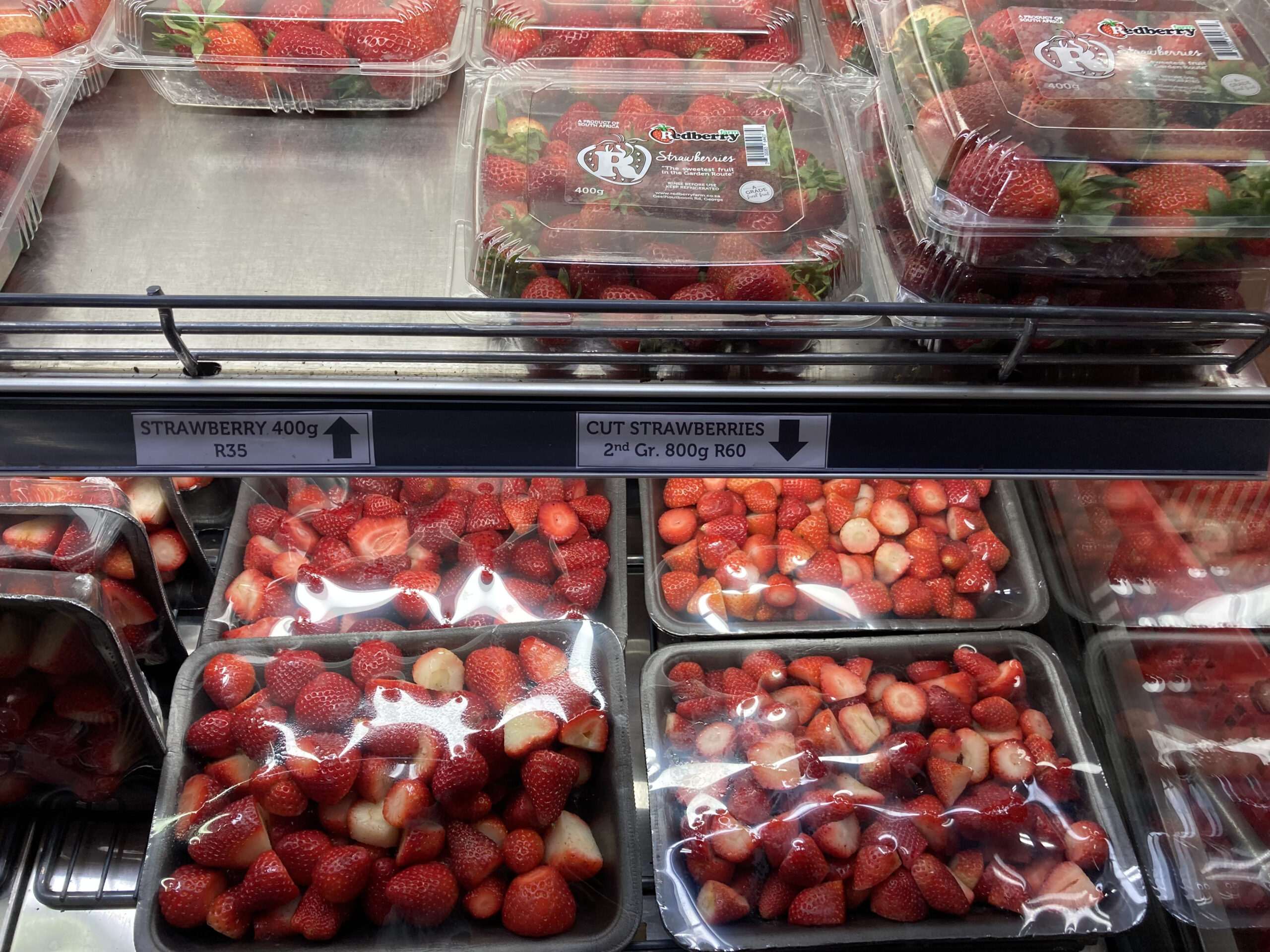 いちごはショップで購入することもできます。400グラムでR35(280円)、800グラムでR60(480円)とこちらもリーズナブル。