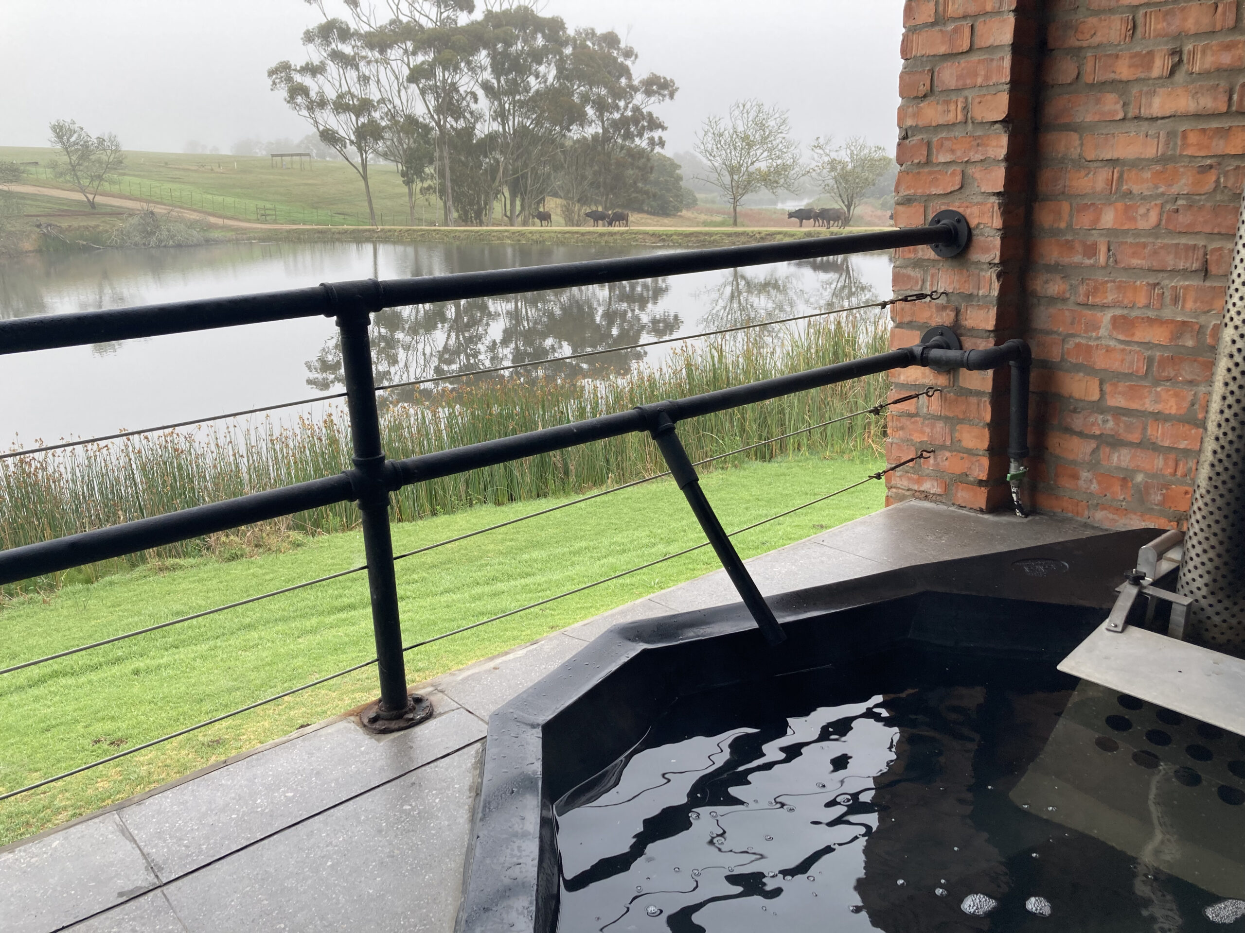 早朝、ゲストから動物がよく見える位置にスタッフが餌のバケツをおいてくれているようで、朝は特に露天風呂からサイやバッファローがよく見えました。