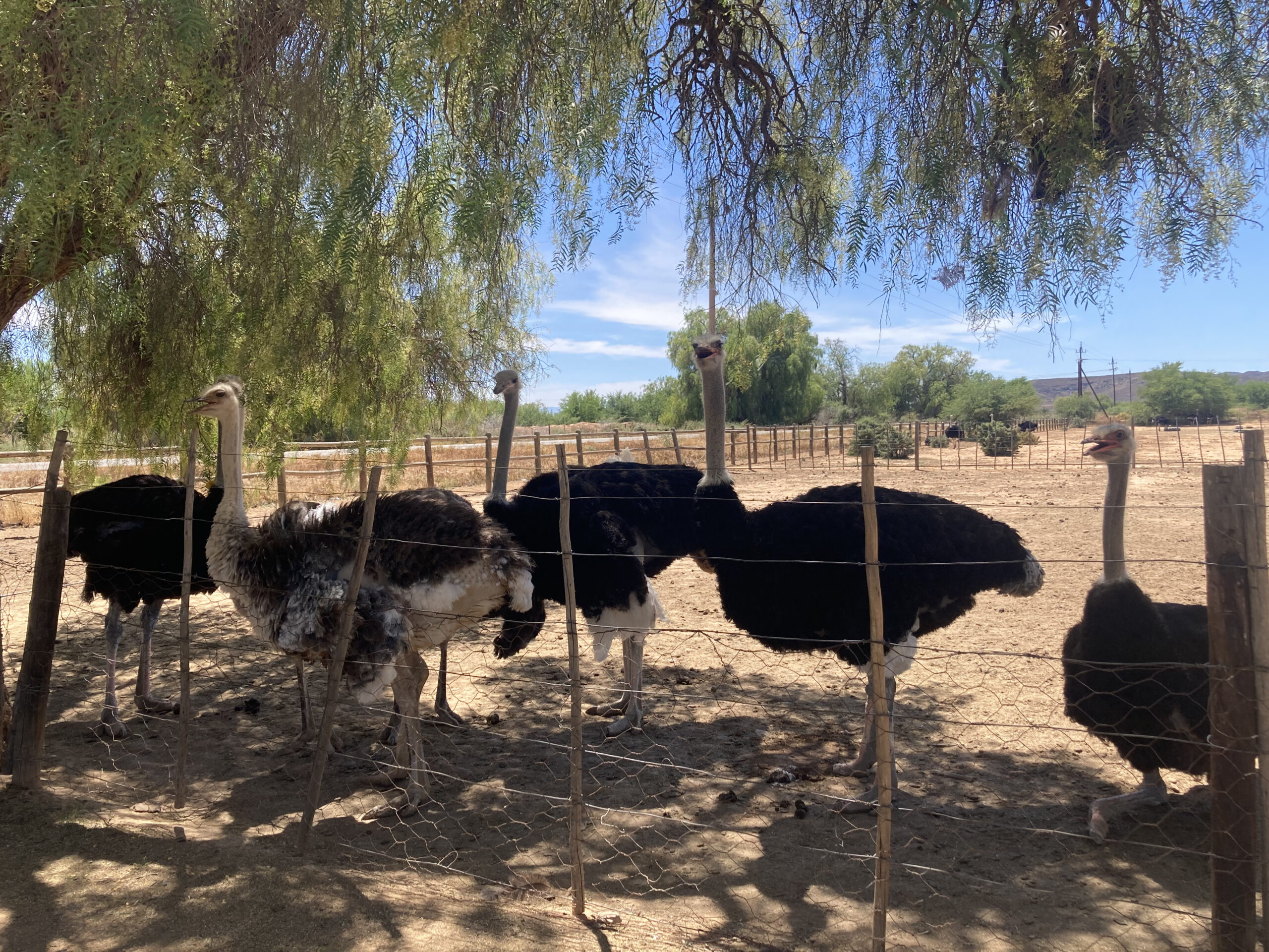 ジョージから車で1時間ほどで、オーツホーンというダチョウ農園で有名な観光地にも行くことができます。あちこちに観光用のダチョウ農園があり、餌やりや、ダチョウについて学べるツアーに参加することができます。