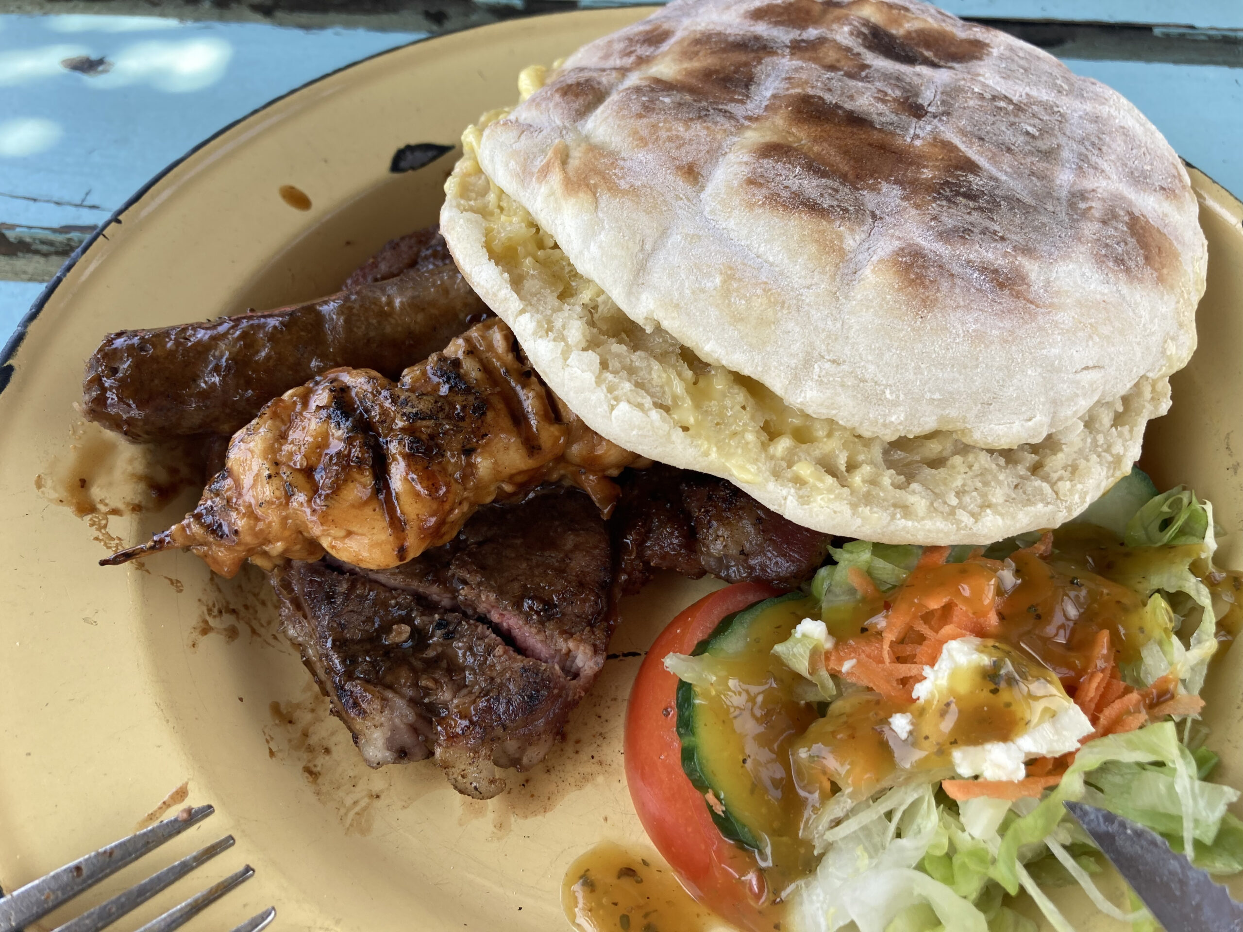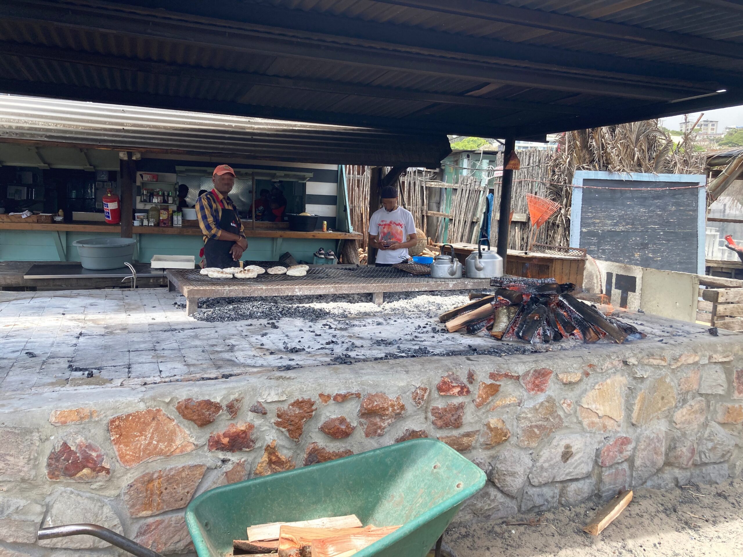 中でもひときわ目立っていたのが海岸沿いのレストラン、KAAI4です。こちらは炭火焼きのパンが自慢のレストランで、海を眺めながら南アフリカ式のバーベキュー、ブライ料理を堪能できます。
