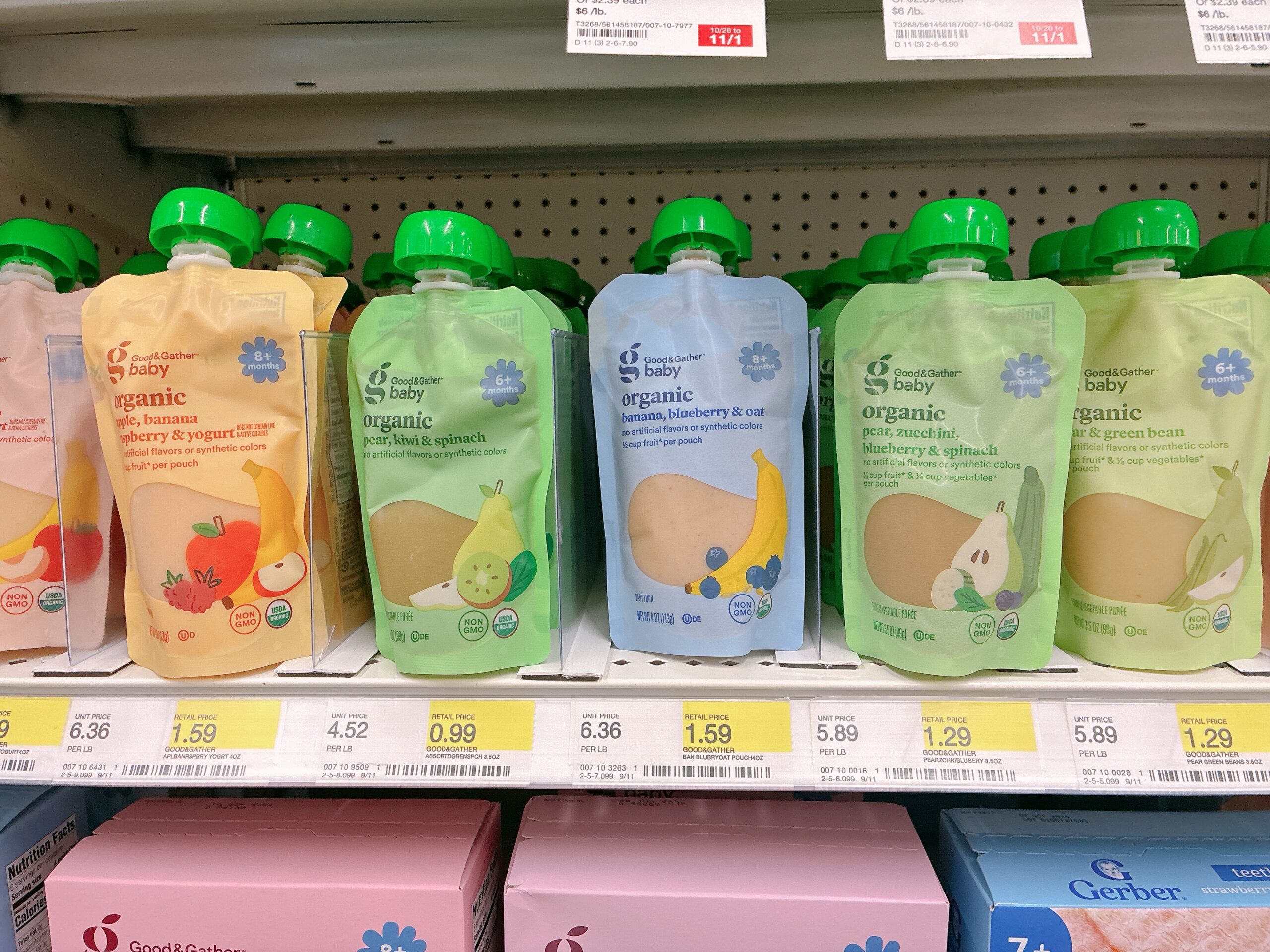アメリカのスーパーには、それぞれのプライベートブランド(自社ブランド)のベビーフードがあります。