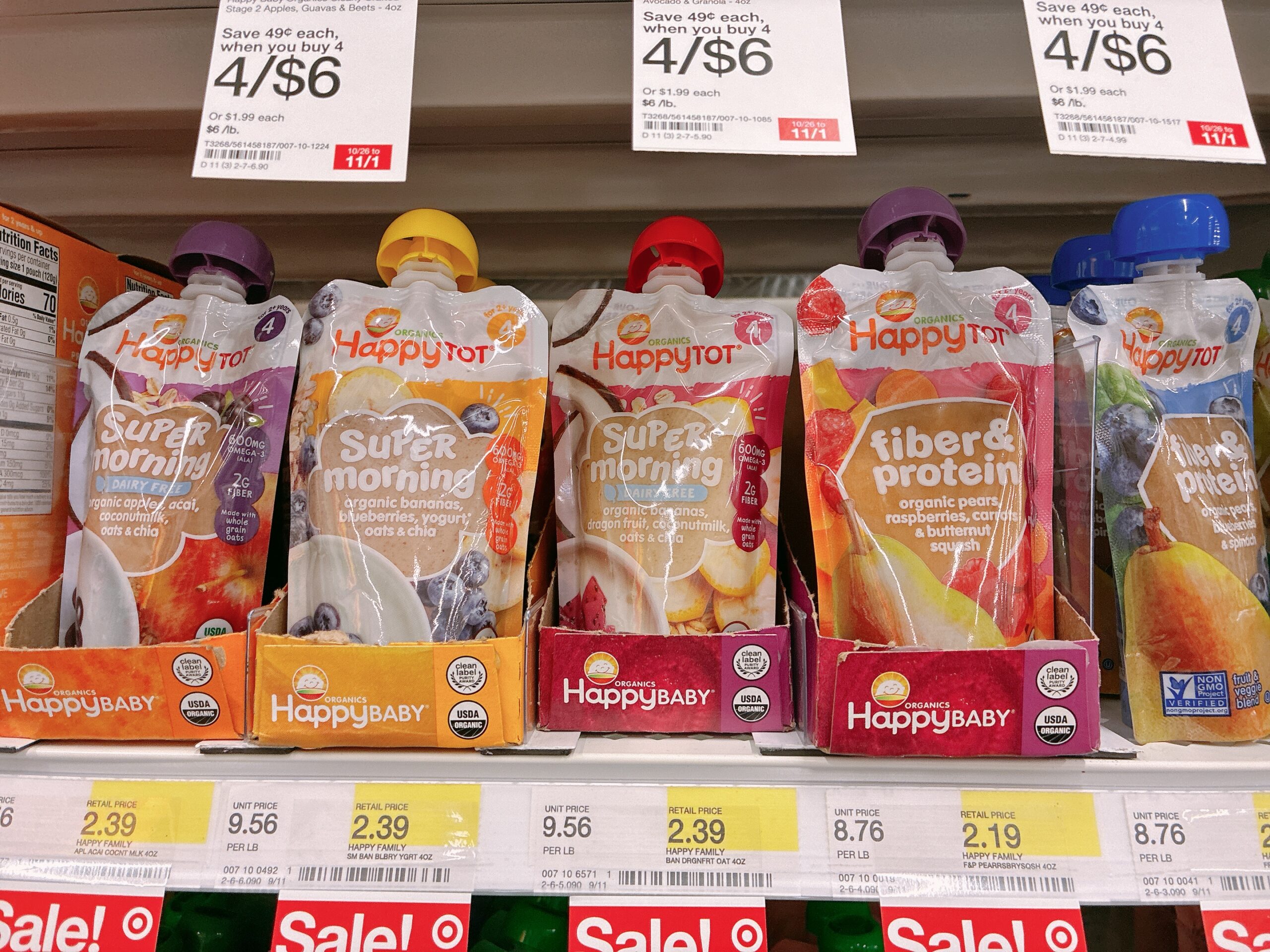 日本でよく見かける和光堂のような「お弁当スタイル」のベビーフード(ごはんやおかずが一体になったパック)は、アメリカではほとんど見かけません。その代わりに、ピュレ状の野菜や果物が単品またはミックスで売られていて、種類がとても豊富です。