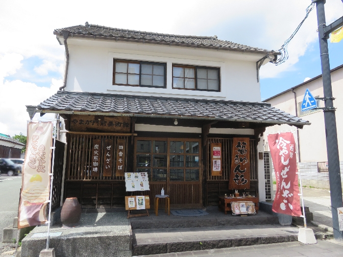 もしかしたら、当時の人もふらりとおいしいものに誘われてのんびりとお茶なとしただらぁか?! と勝手に想像世界を楽しみながら”モンブランアイス”ののぼり旗に誘われて「やまが門前美術館」へ。