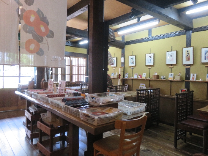 かつて「まゆ問屋」として使われていた築100年の建物には”福まゆ人形”の看板が見えます。